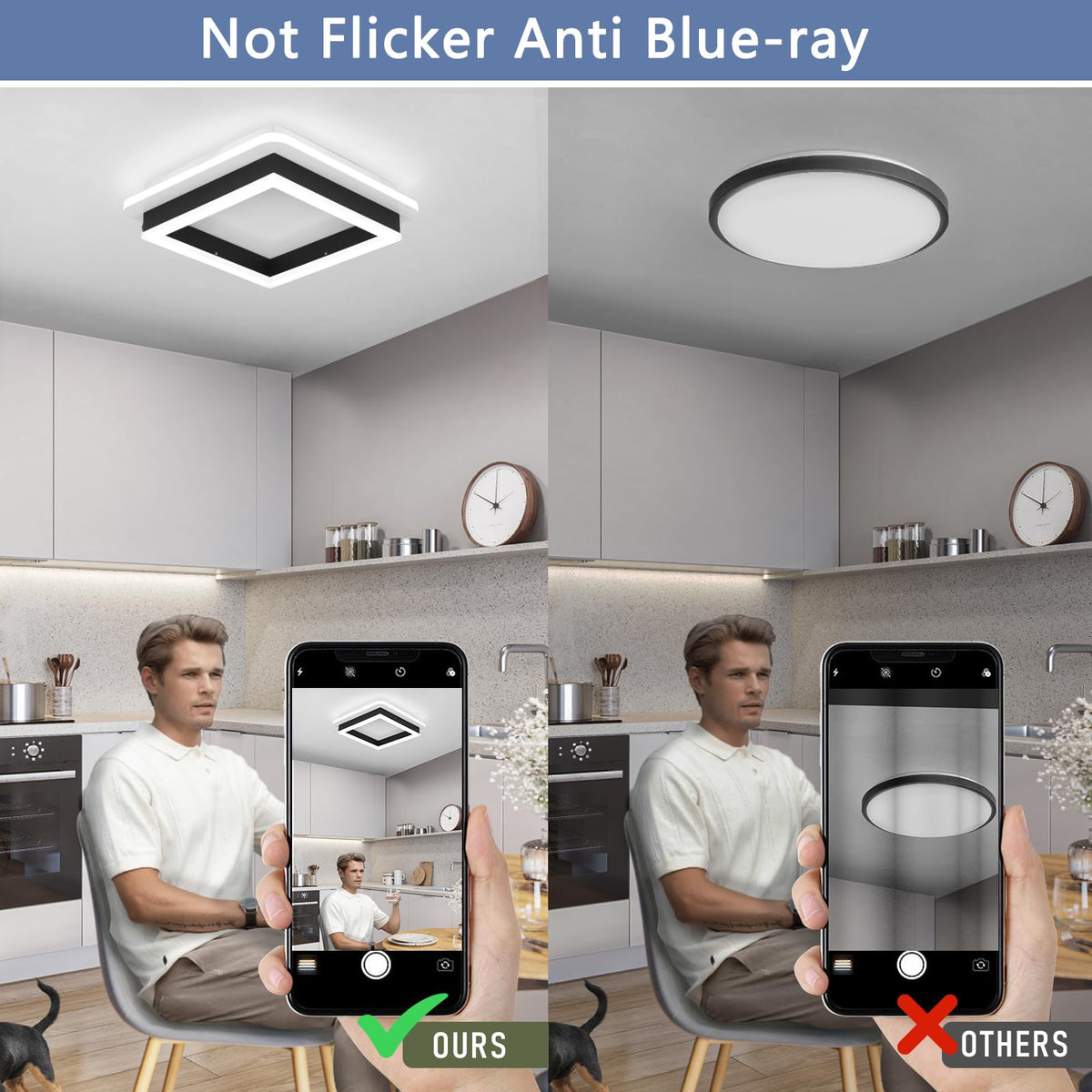 Caneoe 3 Packs Square Flush Mount Ceiling Light 6000K Black Modern Led Ceiling Light Fixture Minimalist Hallway Lighting Fixture Ceiling Lamp For Hallway Entryway Bedroom Balcony (Black)