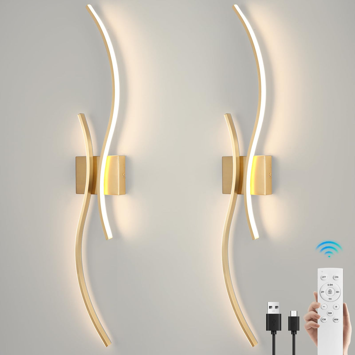 Caneoe Battery Operated Wall Sconces With Remote Control,Rechargeable Dimmable Touch Wall Sconces Set Of Two,3000K-6500K Led Wir