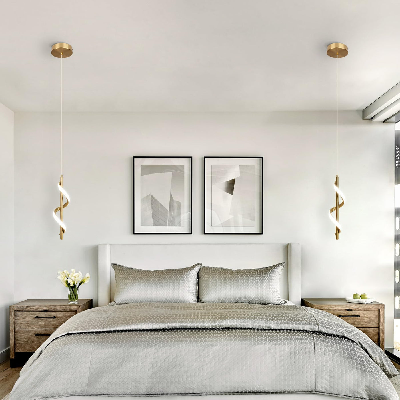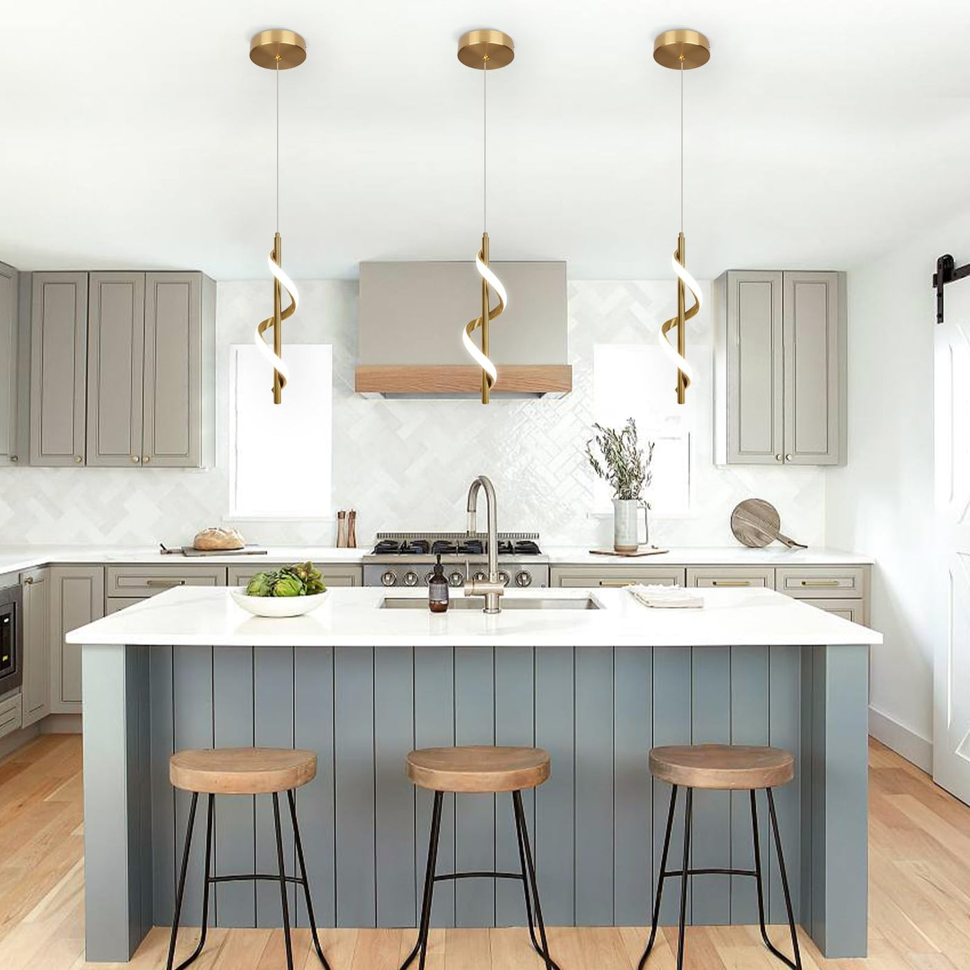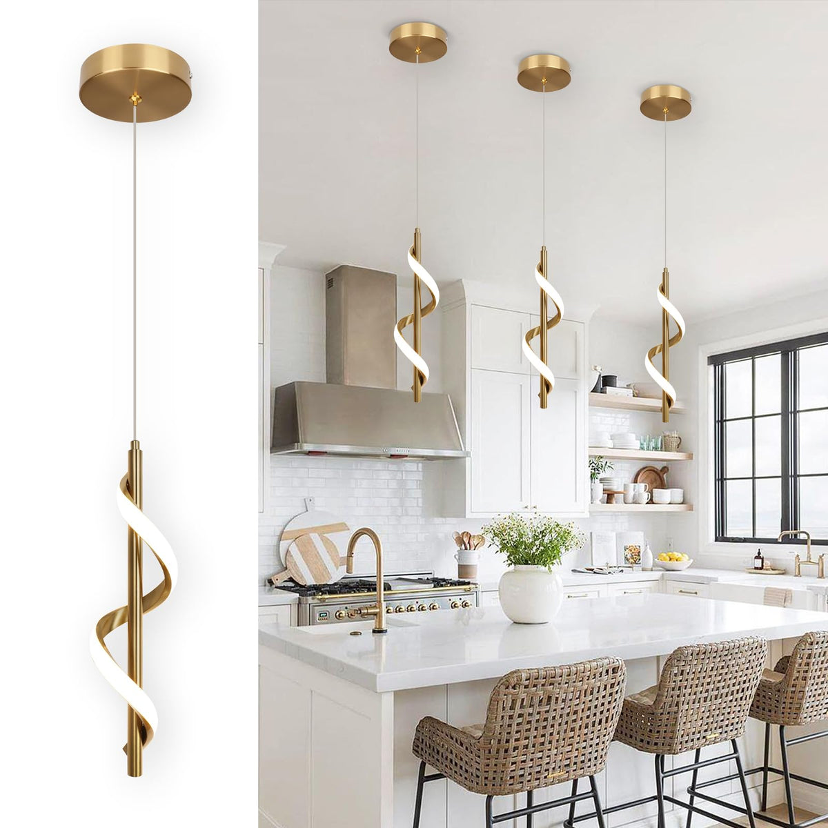 Caneoe Gold Pendant Light, Spiral Modern Led Pendant Lighting For Kitchen Island, 5500K Brushed Brass Ceiling Hanging Light Fixt