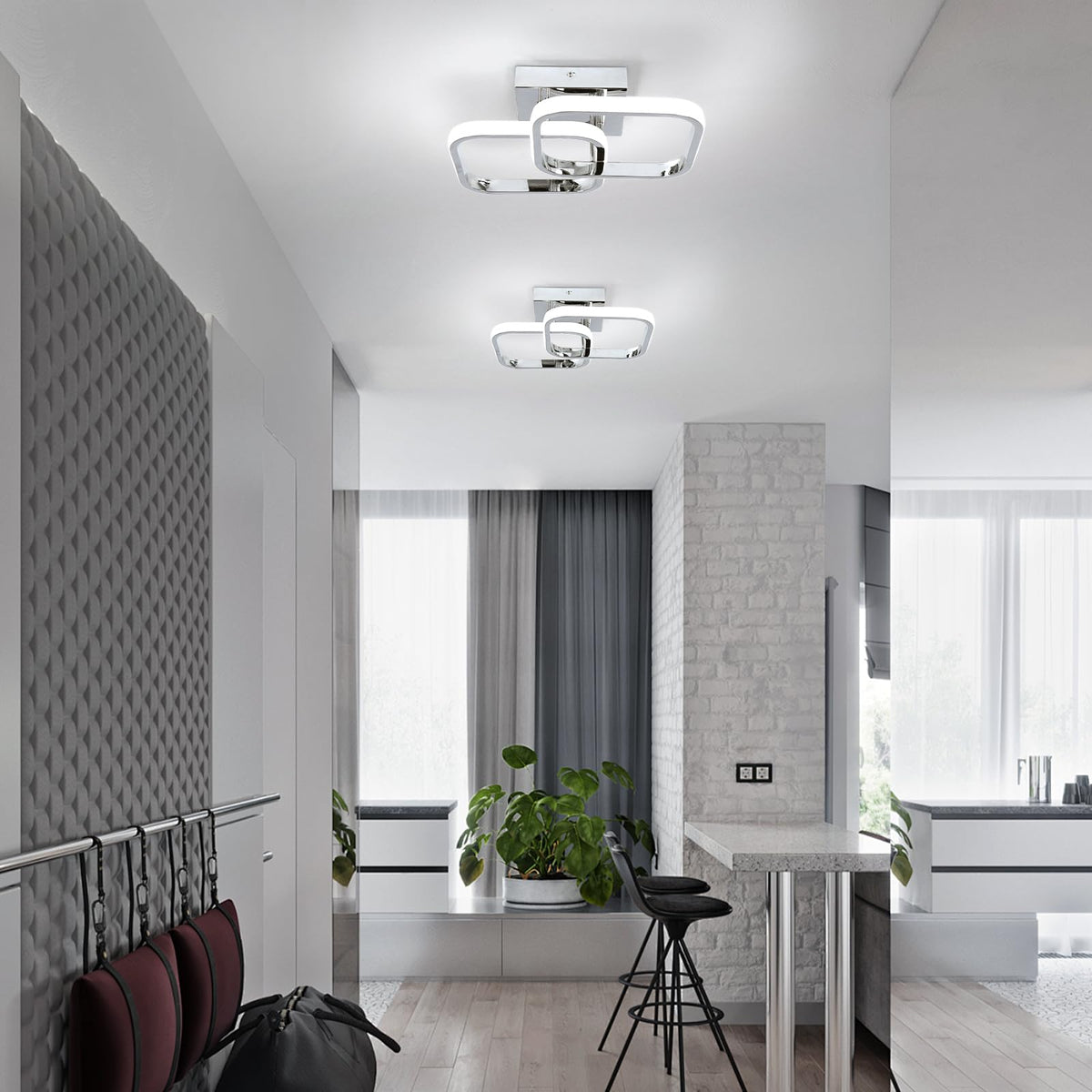 Q: What color finish does the CANEOE ceiling light have?A: The CANEOE Led Hallway Ceiling Light features a chrome finish, giving it a sleek and modern appearance.