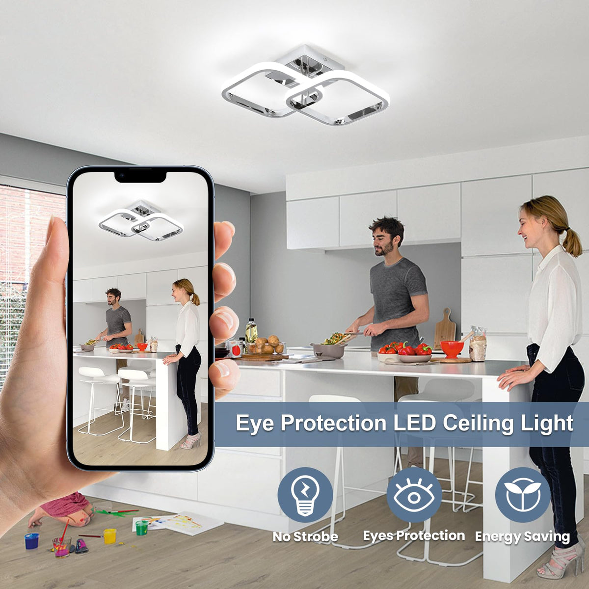 CANEOE Led Ceiling Light Fixture, Square Modern Design, 6000K Chrome Finish, Metal, Model GDD-SFSL-C-US