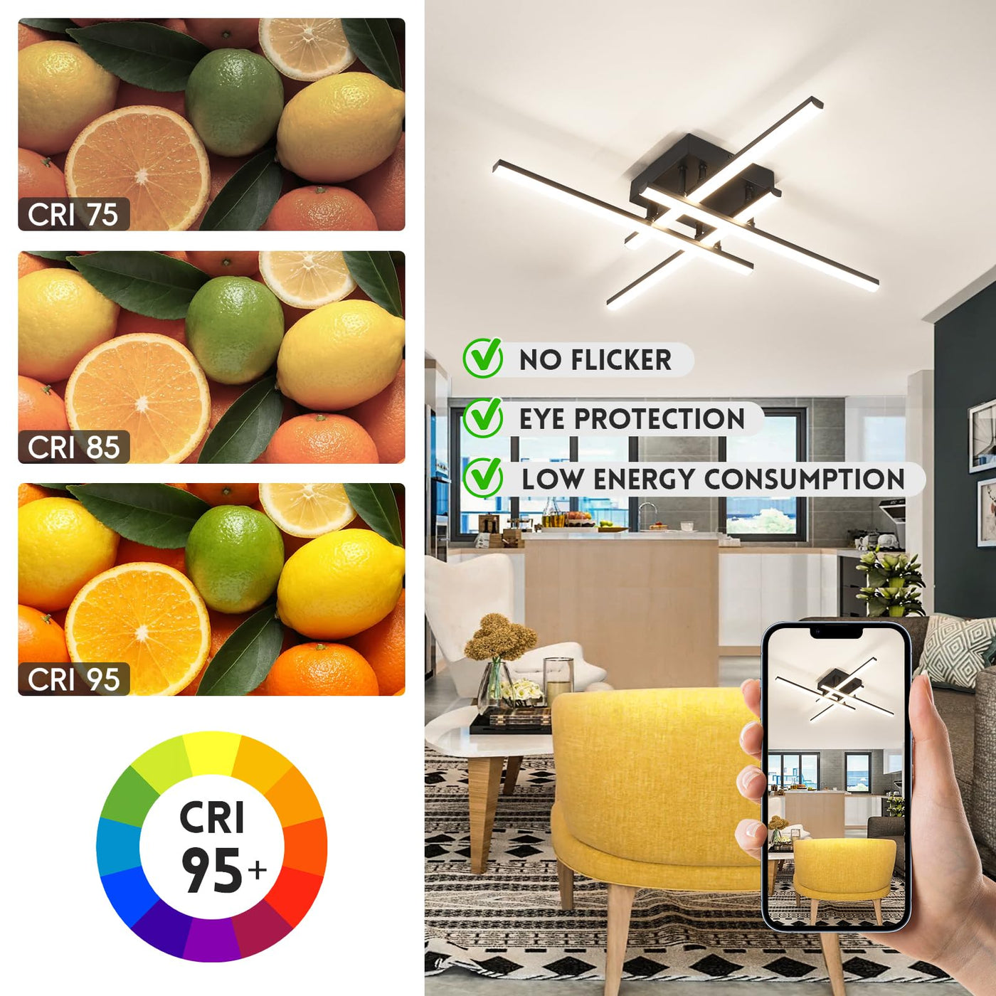 Caneoe Modern Ceiling Light Fixture Sputnik Dimmable Ceiling Light With Remote Control Black Flush Mount Chandelier Ceiling Lamp