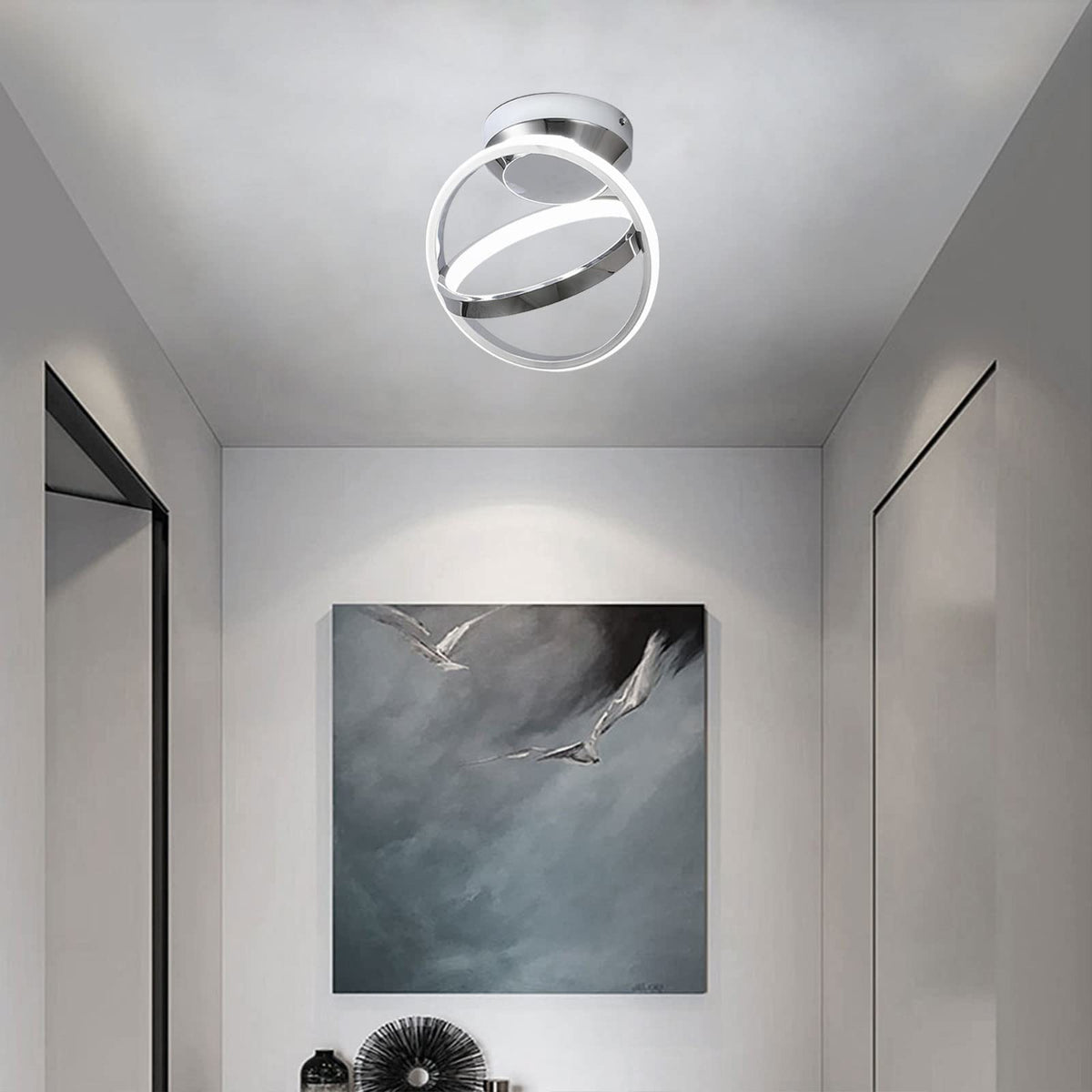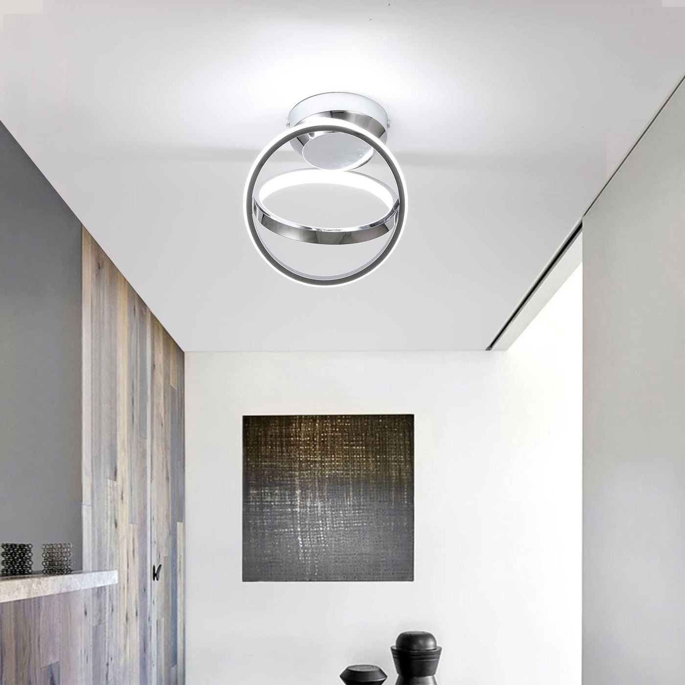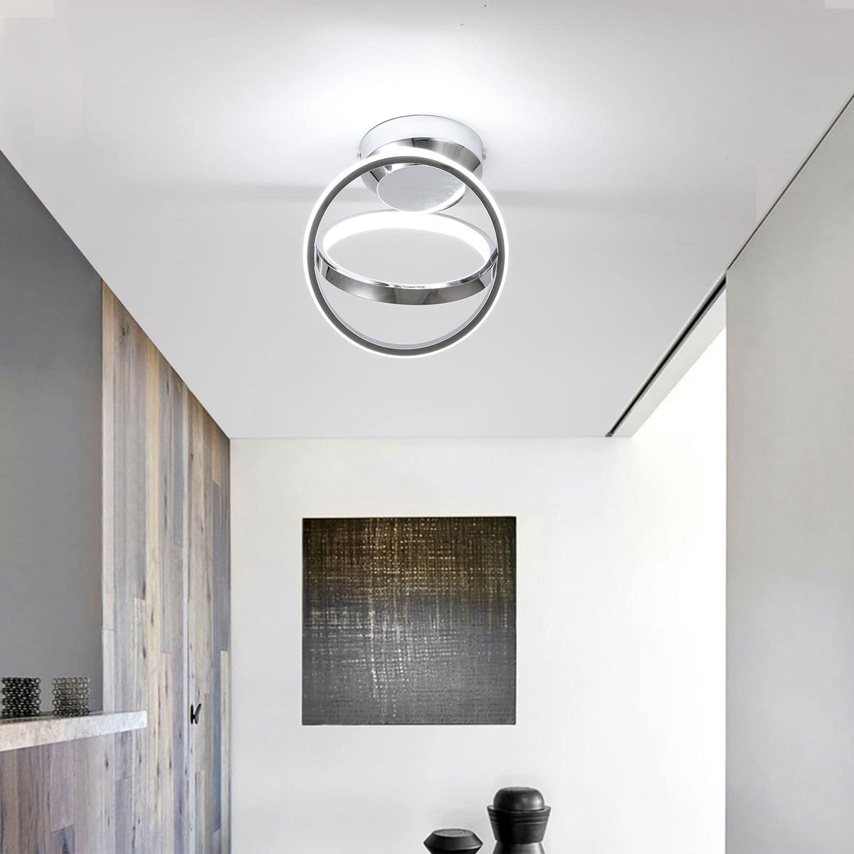 Q: Can this ceiling light be used in outdoor settings?A: This ceiling light is designed primarily for indoor use, such as in hallways, living rooms, or bedrooms. It is not recommended for outdoor settings.