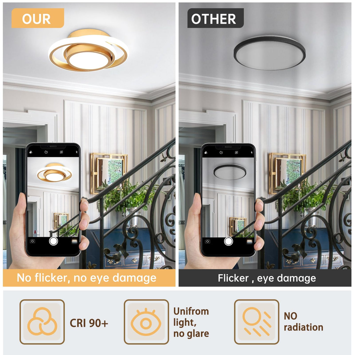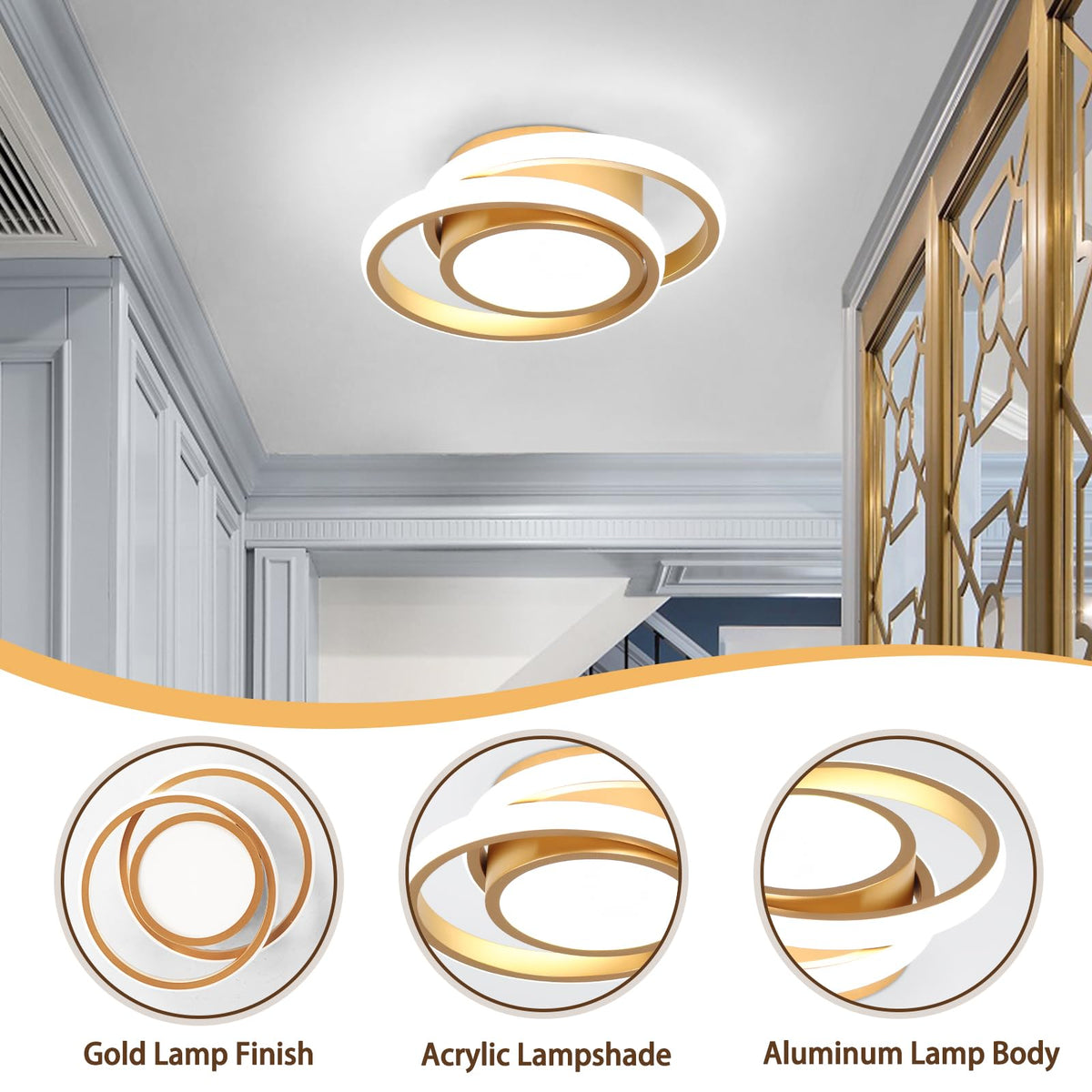 Caneoe Small Modern Led Ceiling Light Gold Round Hallway Light Fixtures Ceilings Indoor Ceiling Lamp Fixtures For Hallway Living Room Bedroom Kitchen Office Lighting Fixture