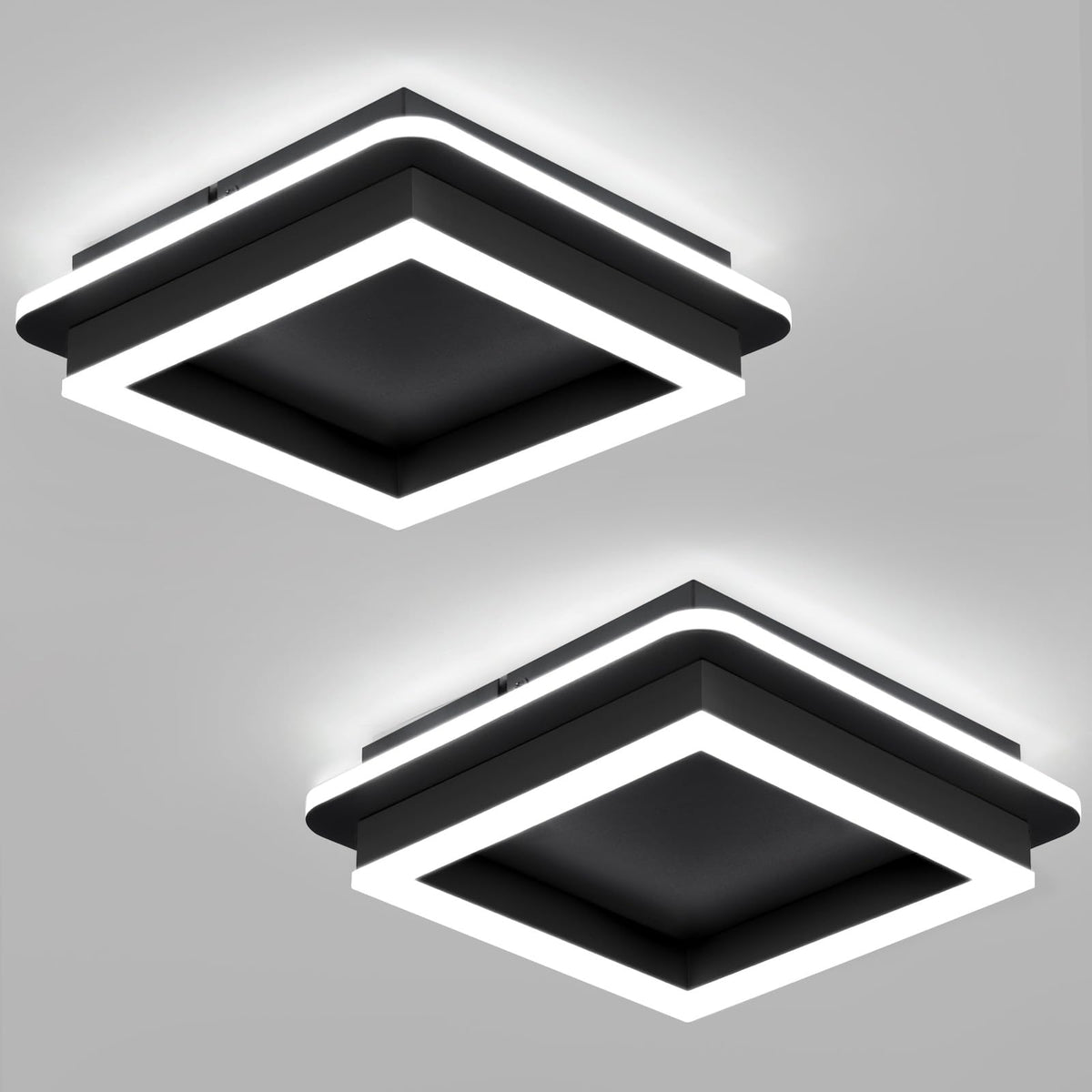 CANEOE Square Flush Mount Ceiling Light - 6000K LED Fixture, Aluminum, 2 Packs, All Black, Model GD-2CFXBK-C-US-2P