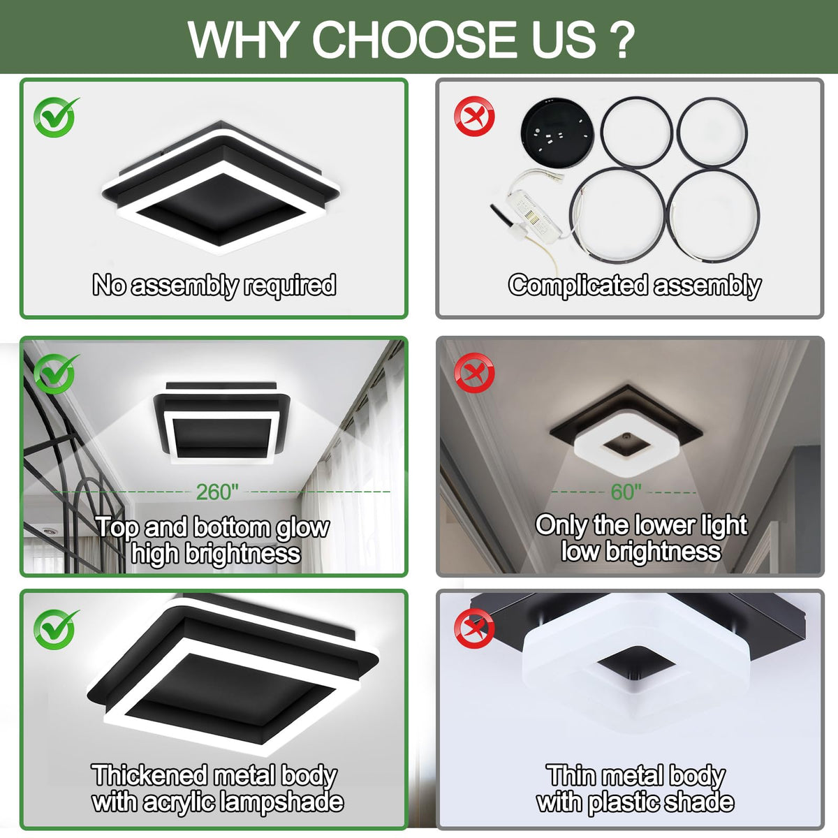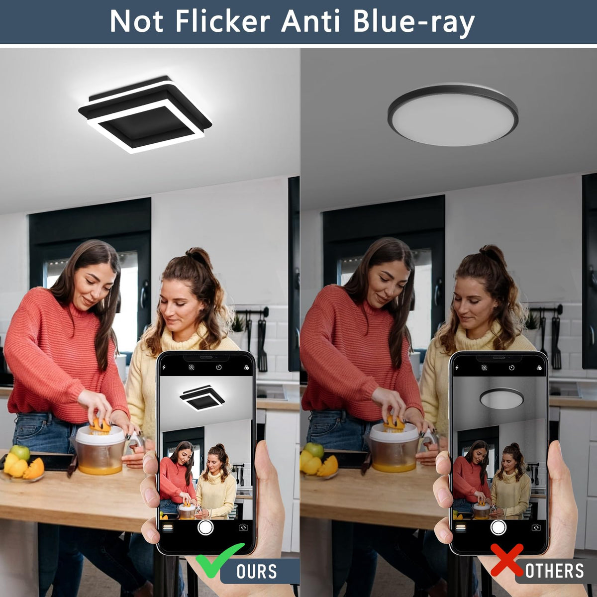Q: What color is the ceiling light fixture?A: The CANEOE Square Flush Mount Ceiling Light features an all-black frame, contributing to its modern and minimalist design.