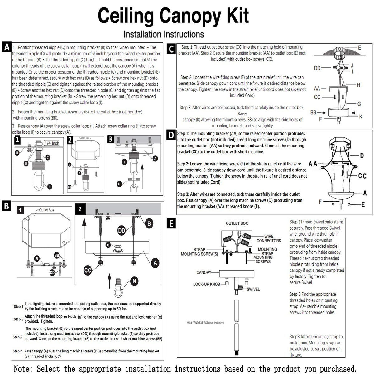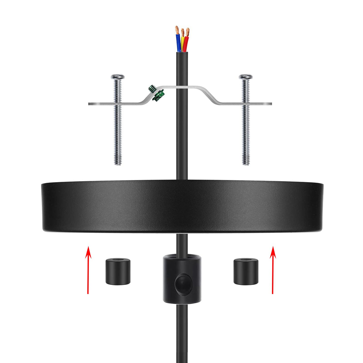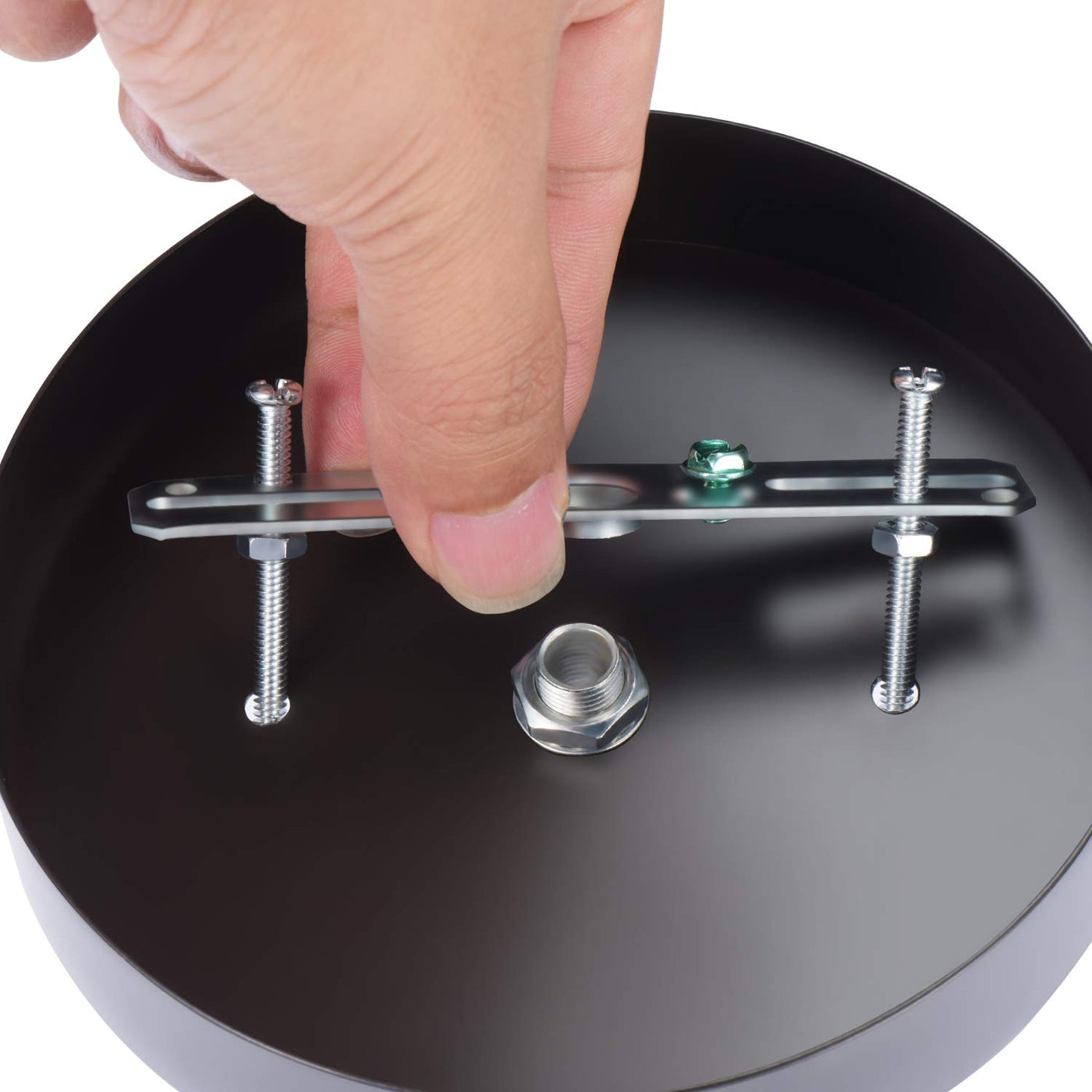 - **Complete Canopy Kit**: Includes a 5 1/8 inch canopy, 4" offset crossbar, black cord grip bushing, two 1.5" screws, two 1" screws, and matching color acorn cap nuts, ensuring you have everything needed for a seamless installation.