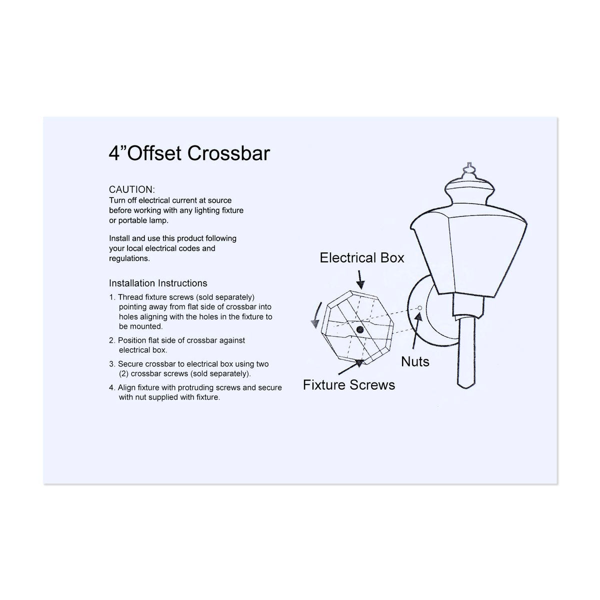 Q: How do I install the Canomo Light Fixture Crossbar?A: To install the Canomo Light Fixture Crossbar, follow your local electrical codes and regulations. Use the provided screws and nuts to securely attach the crossbar to the electrical junction box.