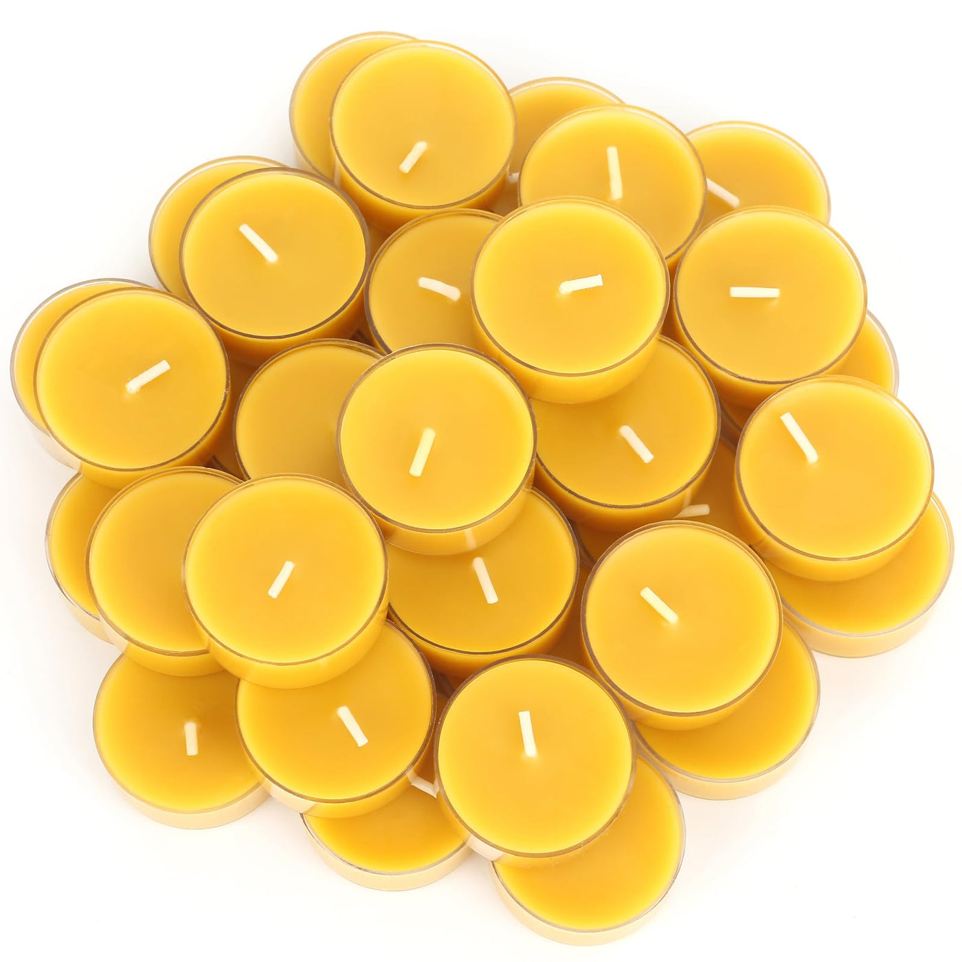 Capaniel 36 Packs Beeswax Tealight Candles- 4 Hour Burn Time Pure Beeswax Candles- Burn Evenly And Clean- Beeswax Candles Bulk Smokeless Beeswax Tea Lights For Relaxing Air Purification