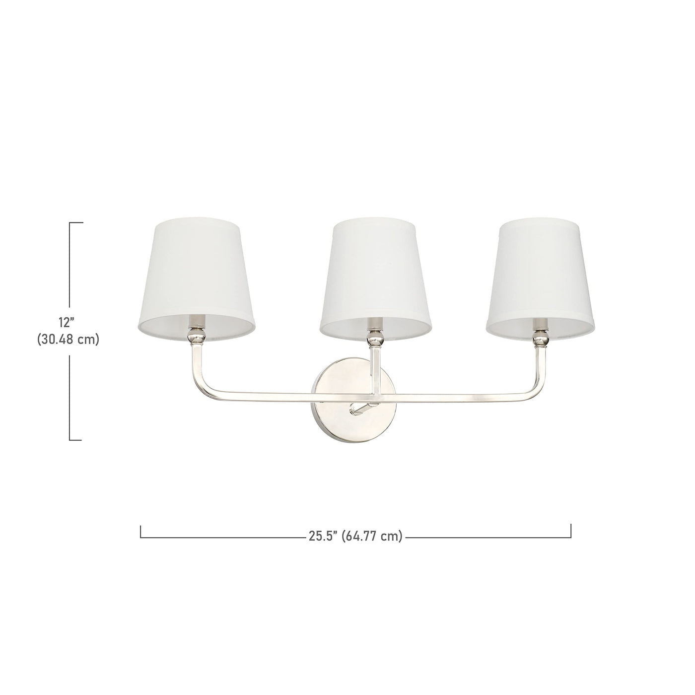 Capital Lighting 119331PN-674 Bath Vanity Light, 3-Light, Polished Nickel, 12inH x 26inW, Metal & Cloth Shades