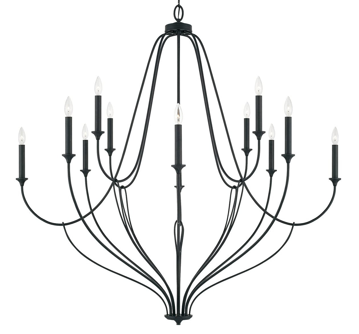 Capital Lighting 441601Bi 12-Light Candle Chandelier, Black Iron, 53"H X 52"W, Transitional Design