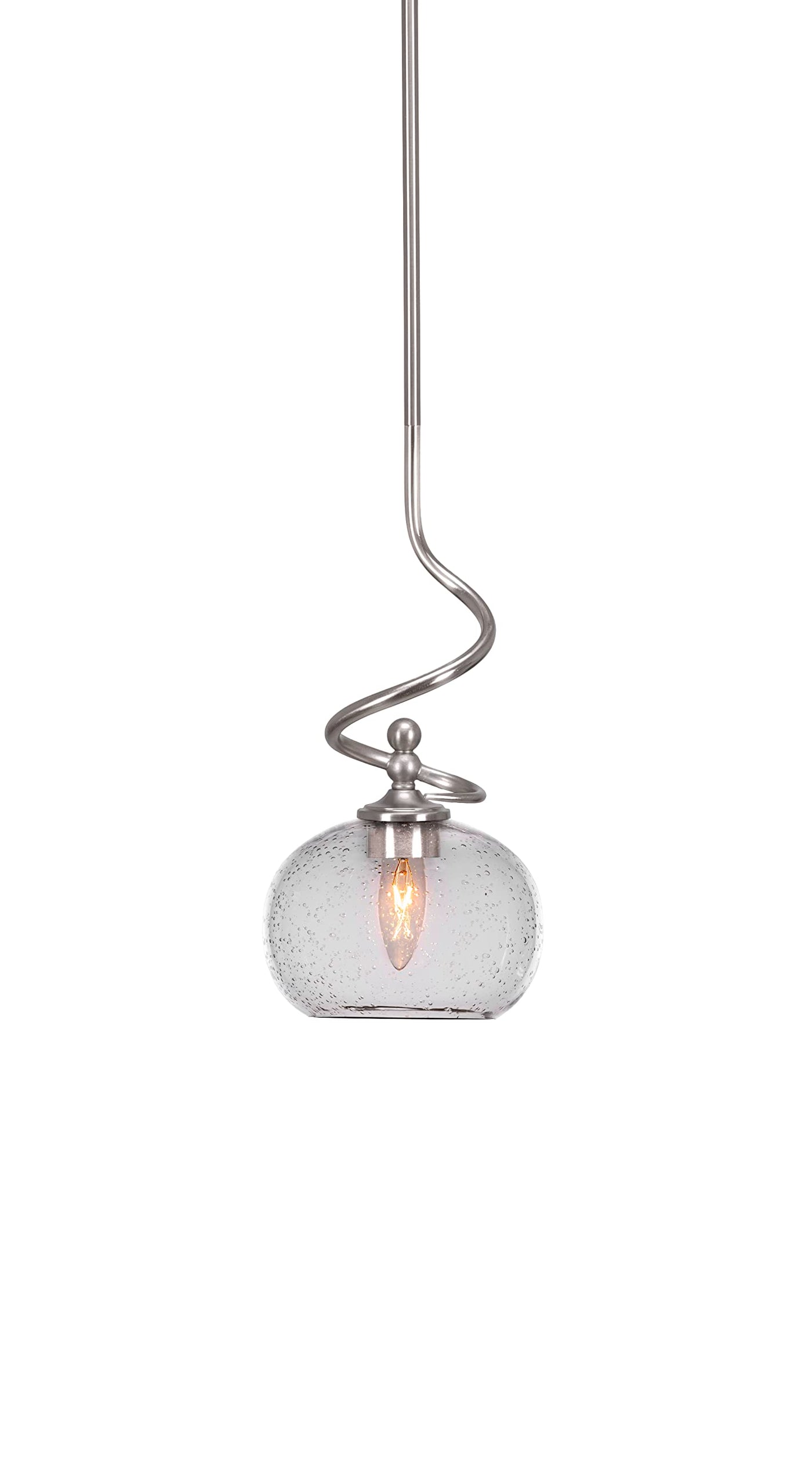 (901-BN-202) Capri Stem Mini Pendant With Hang Straight Swivel In Brushed Nickel Finish With 7" Clear Bubble Glass. Comes With 1-6", 2-12", And 1-18" Stem Sections/Hang Straight Swivel And 8' Of Wire. Ideal For: Bar, Bedroom, Dinning Room, Entry / Foyer / Hallway, Game Room, Kitchen. Dry Location Rated. Light Bulb Data: 1 Medium 100 Watt. Bulb Included: No.