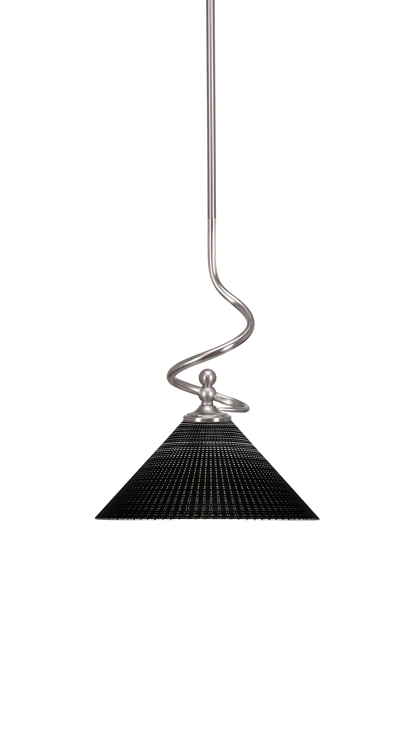 (901-BN-4009) Capri Stem Mini Pendant With Hang Straight Swivel In Brushed Nickel Finish With 12" Black Matrix Glass. Comes With 1-6", 2-12", And 1-18" Stem Sections/Hang Straight Swivel And 8' Of Wire. Ideal For: Bar, Bedroom, Dinning Room, Entry / Foyer / Hallway, Game Room, Kitchen. Dry Location Rated. Light Bulb Data: 1 Medium 100 Watt. Bulb Included: No.
