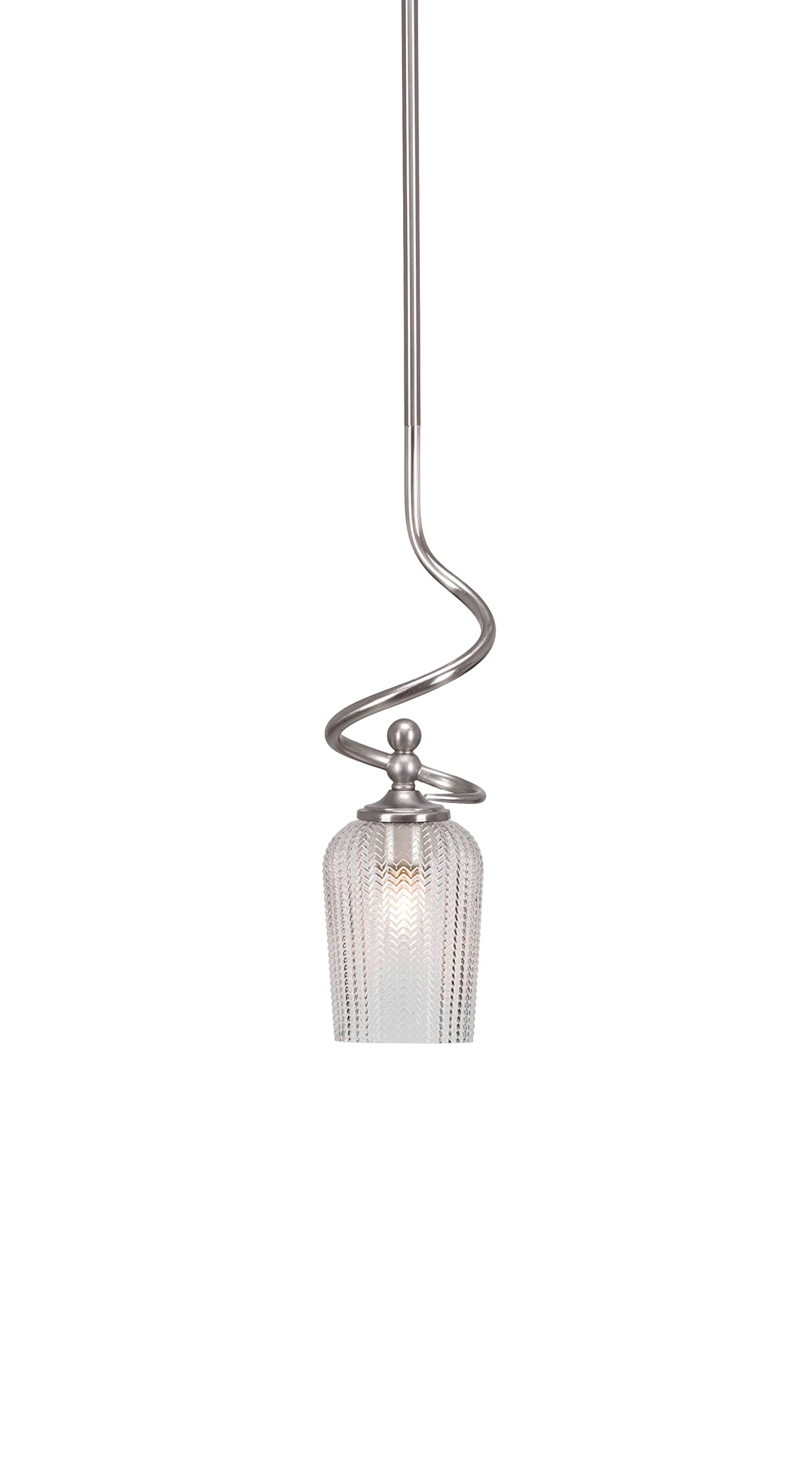 (901-BN-4250) Capri Stem Mini Pendant With Hang Straight Swivel In Brushed Nickel Finish With 5" Clear Textured Glass. Comes With 1-6", 2-12", And 1-18" Stem Sections/Hang Straight Swivel And 8' Of Wire. Ideal For: Bar, Bedroom, Dinning Room, Entry / Foyer / Hallway, Game Room, Kitchen. Dry Location Rated. Light Bulb Data: 1 Medium 100 Watt. Bulb Included: No.