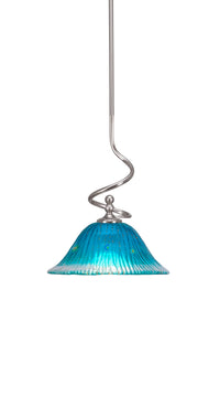 (901-BN-438) Capri Stem Mini Pendant With Hang Straight Swivel In Brushed Nickel Finish With 10" Teal Crystal Glass. Comes With 1-6", 2-12", And 1-18" Stem Sections/Hang Straight Swivel And 8' Of Wire. Ideal For: Bar, Bedroom, Dinning Room, Entry / Foyer / Hallway, Game Room, Kitchen. Dry Location Rated. Light Bulb Data: 1 Medium 100 Watt. Bulb Included: No.