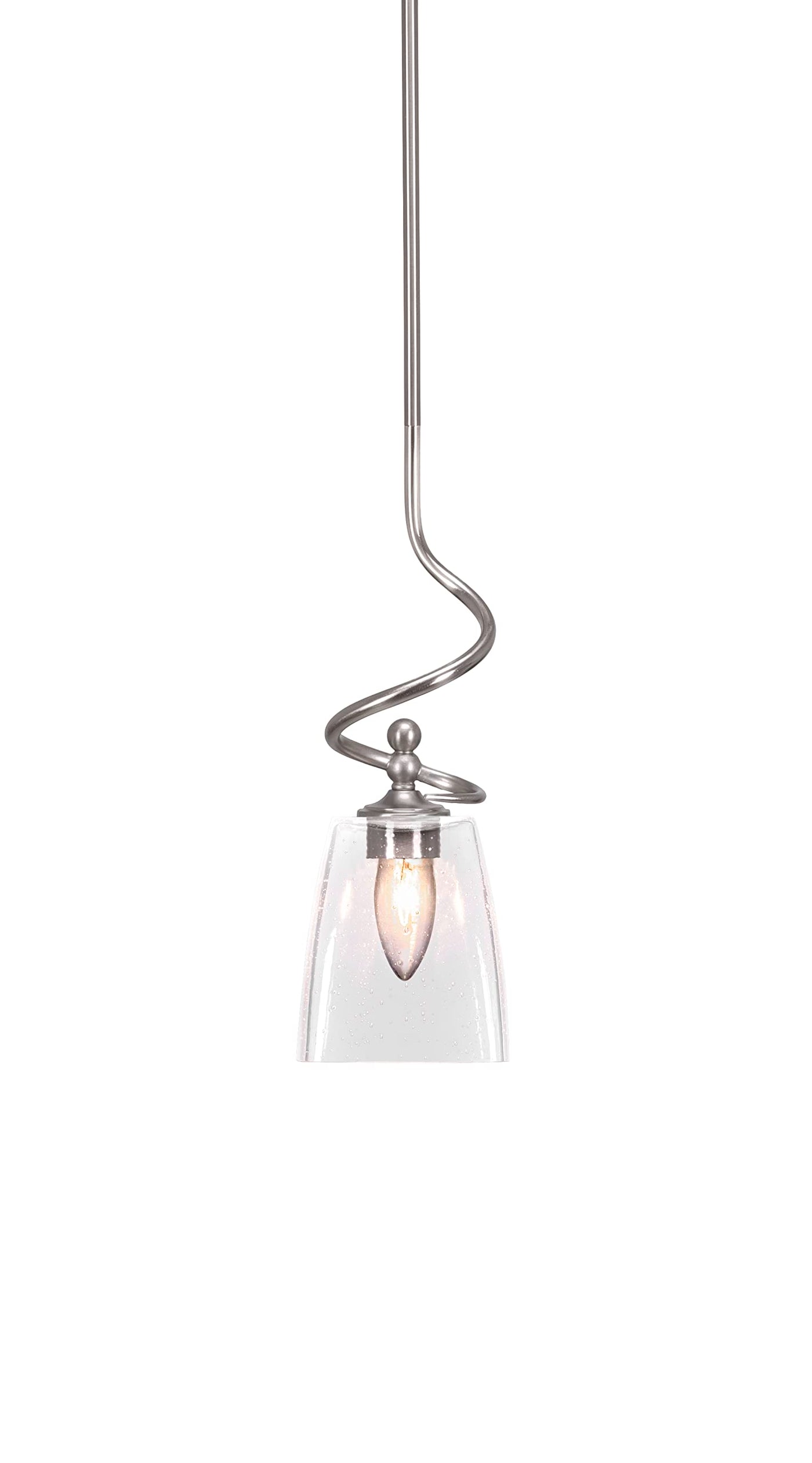 (901-BN-461) Capri Stem Mini Pendant With Hang Straight Swivel In Brushed Nickel Finish With 4.5" Clear Bubble Glass. Comes With 1-6", 2-12", And 1-18" Stem Sections/Hang Straight Swivel And 8' Of Wire. Ideal For: Bar, Bedroom, Dinning Room, Entry / Foyer / Hallway, Game Room, Kitchen. Dry Location Rated. Light Bulb Data: 1 Medium 100 Watt. Bulb Included: No.
