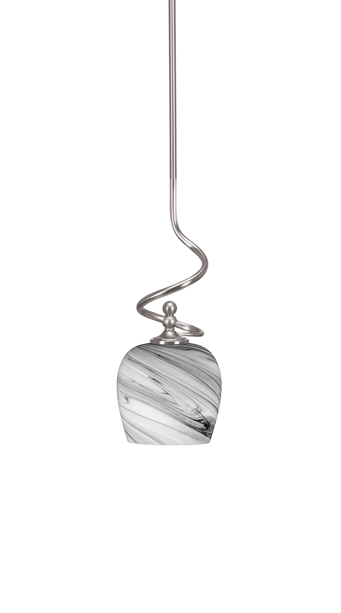 (901-BN-4819) Capri Stem Mini Pendant With Hang Straight Swivel In Brushed Nickel Finish With 6" Onyx Swirl Glass. Comes With 1-6", 2-12", And 1-18" Stem Sections/Hang Straight Swivel And 8' Of Wire. Ideal For: Bar, Bedroom, Dinning Room, Entry / Foyer / Hallway, Game Room, Kitchen. Dry Location Rated. Light Bulb Data: 1 Medium 100 Watt. Bulb Included: No.