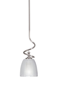 (901-BN-500) Capri Stem Mini Pendant With Hang Straight Swivel In Brushed Nickel Finish With 5" Clear Ribbed Glass. Comes With 1-6", 2-12", And 1-18" Stem Sections/Hang Straight Swivel And 8' Of Wire. Ideal For: Bar, Bedroom, Dinning Room, Entry / Foyer / Hallway, Game Room, Kitchen. Dry Location Rated. Light Bulb Data: 1 Medium 100 Watt. Bulb Included: No.
