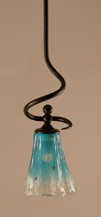 901-DG-725 Capri Stem Mini Pendant With Hang Straight Swivel Shown In Dark Granite Finish With 5.5" Fluted Teal Crystal Glass. Rated for: Dry location. Light Bulb Data: 1 Medium 100 watt. Bulb included: No.