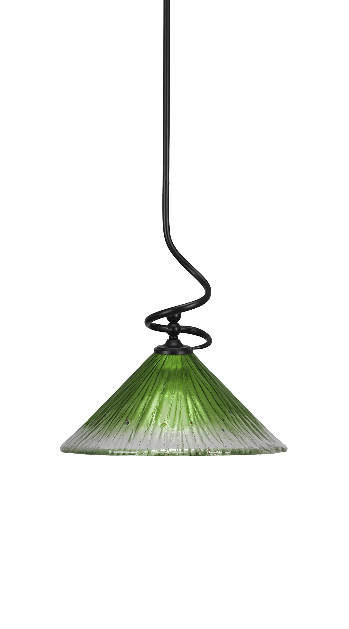 (901-MB-447) Capri Stem Mini Pendant With Hang Straight Swivel In Matte Black Finish With 12" Kiwi Green Crystal Glass. Comes With 1-6", 2-12", And 1-18" Stem Sections/Hang Straight Swivel And 8' Of Wire. Ideal For: Bar, Bedroom, Dinning Room, Entry / Foyer / Hallway, Game Room, Kitchen. Dry Location Rated. Light Bulb Data: 1 Medium 100 Watt. Bulb Included: No.
