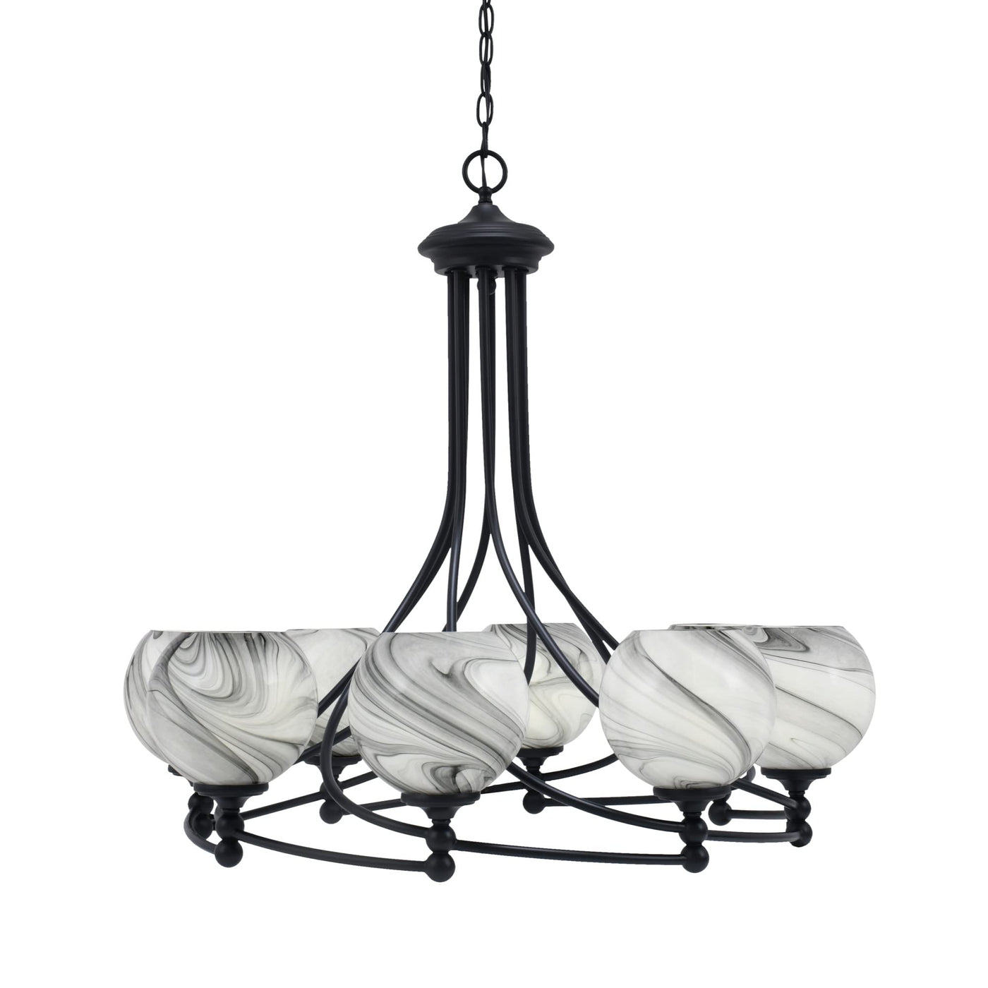 Capri Uplight, 8 Light, Chandelier Shown In Matte Black Finish With 5.75 Onyx Swirl Glass