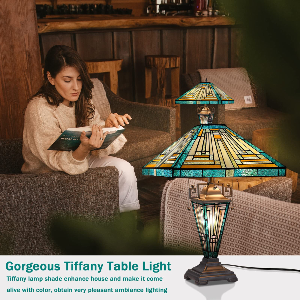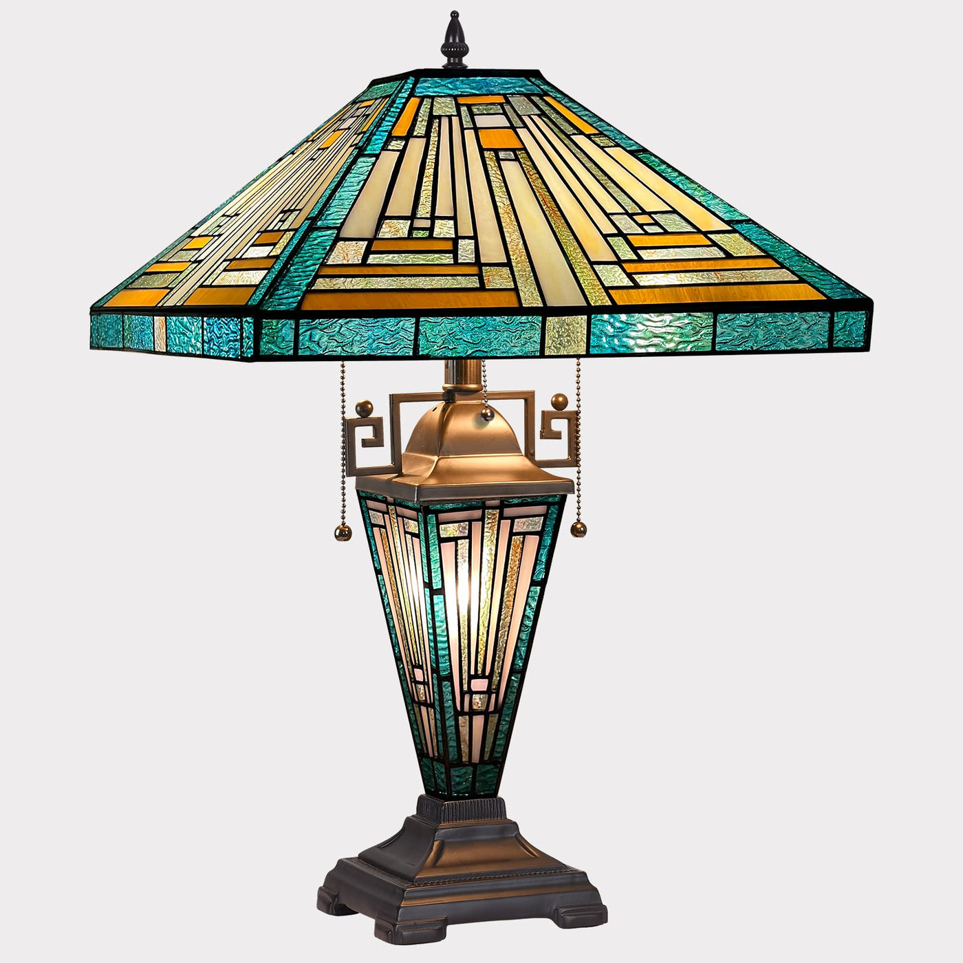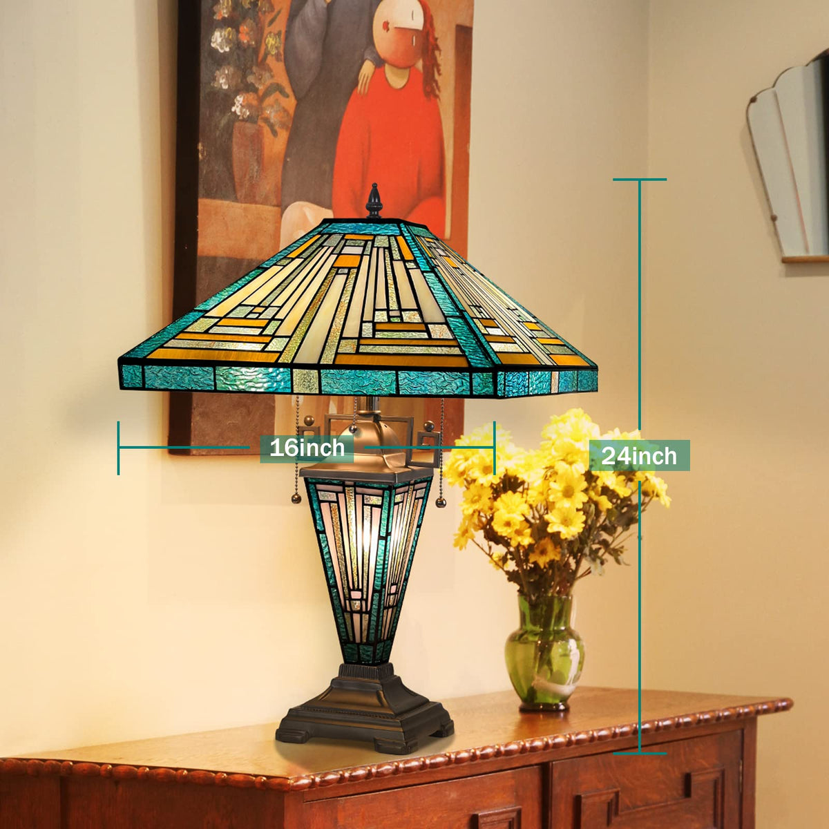 Tall:25 inch,Width:16 inch , Bulb:2 x 60 Watt E26 and 1 x 7 Watt E12 Tiffany Table Lamps for foyer or entryway. Enhance Home and Office Living Space. Abstract art is all about geometric shapes and design. It’s Picasso, Matisse, and Mondrian, a style that takes rudimentary forms and converts them into something extraordinary.