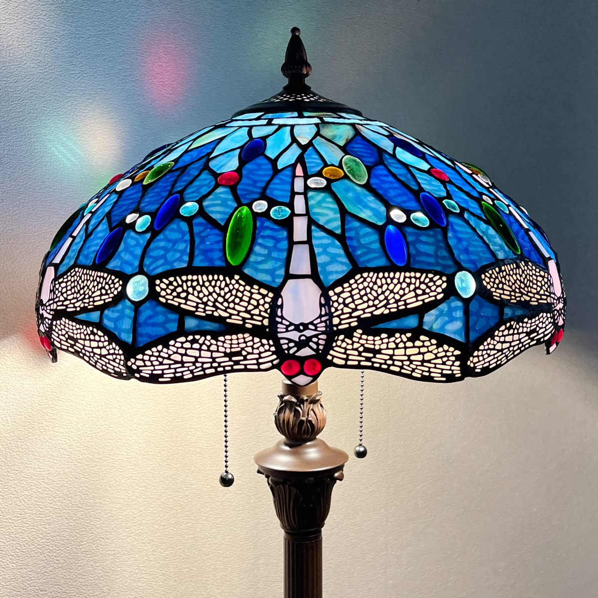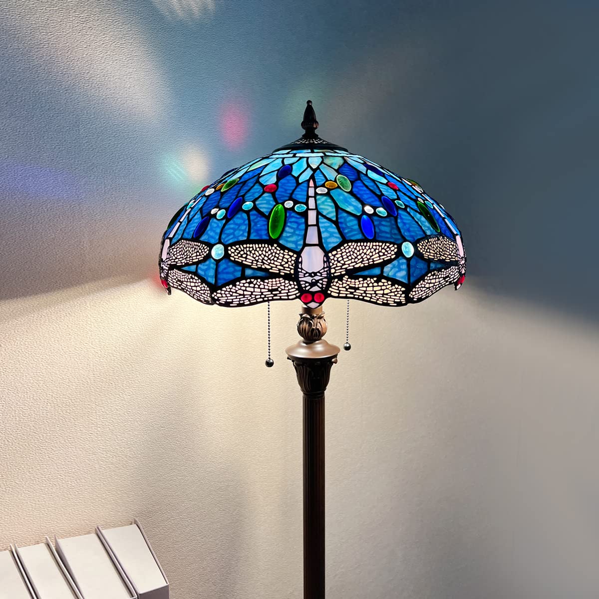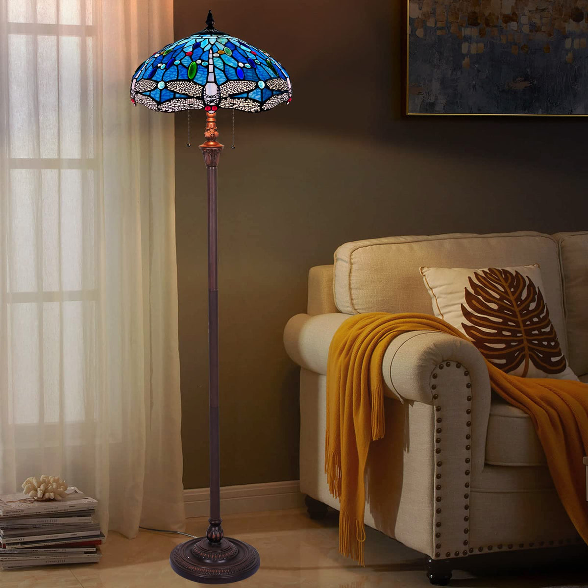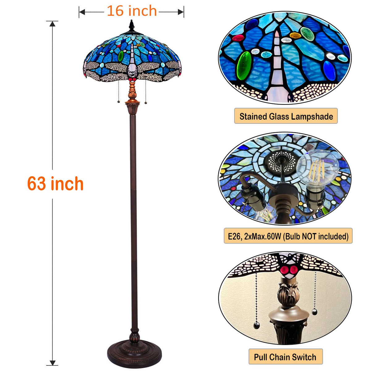 Capulina Tiffany Floor Lamp 2-Light 16'' Wide Stained Glass Dragonfly Antique Style Standing Reading Light For Living Room Bedro