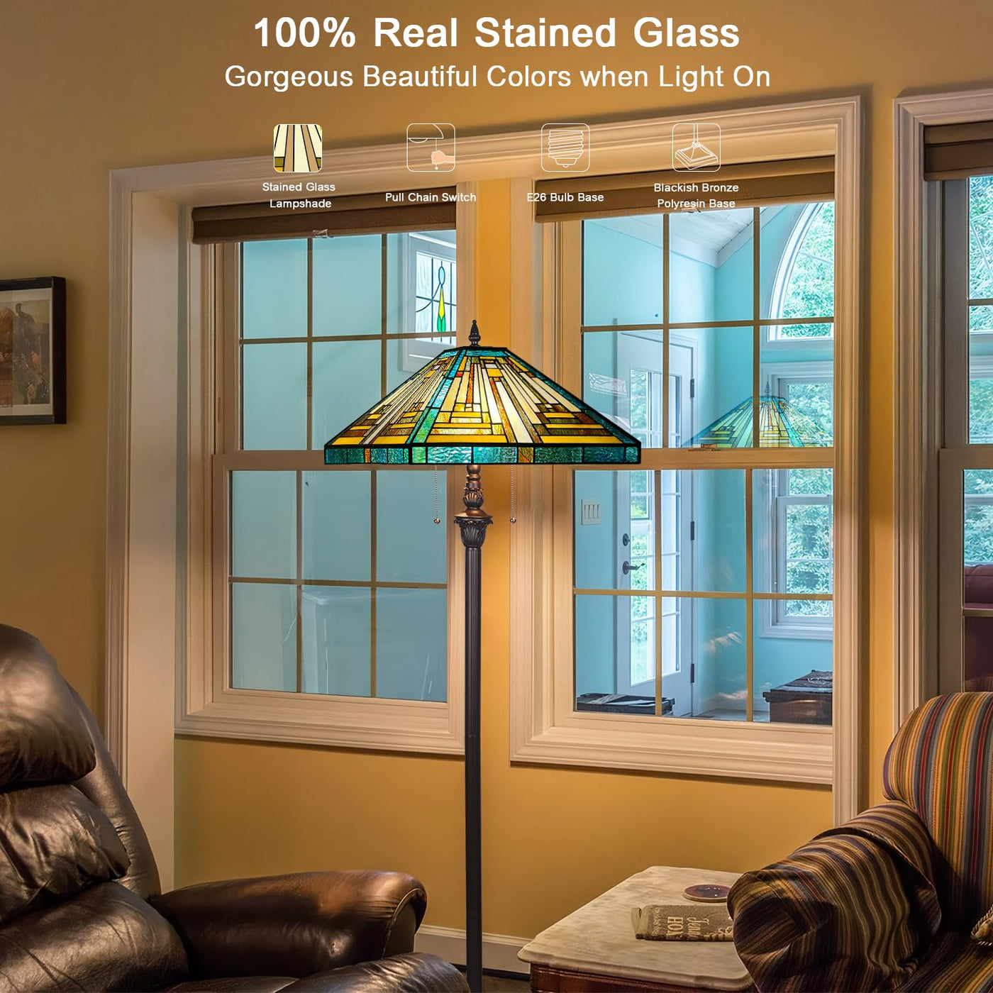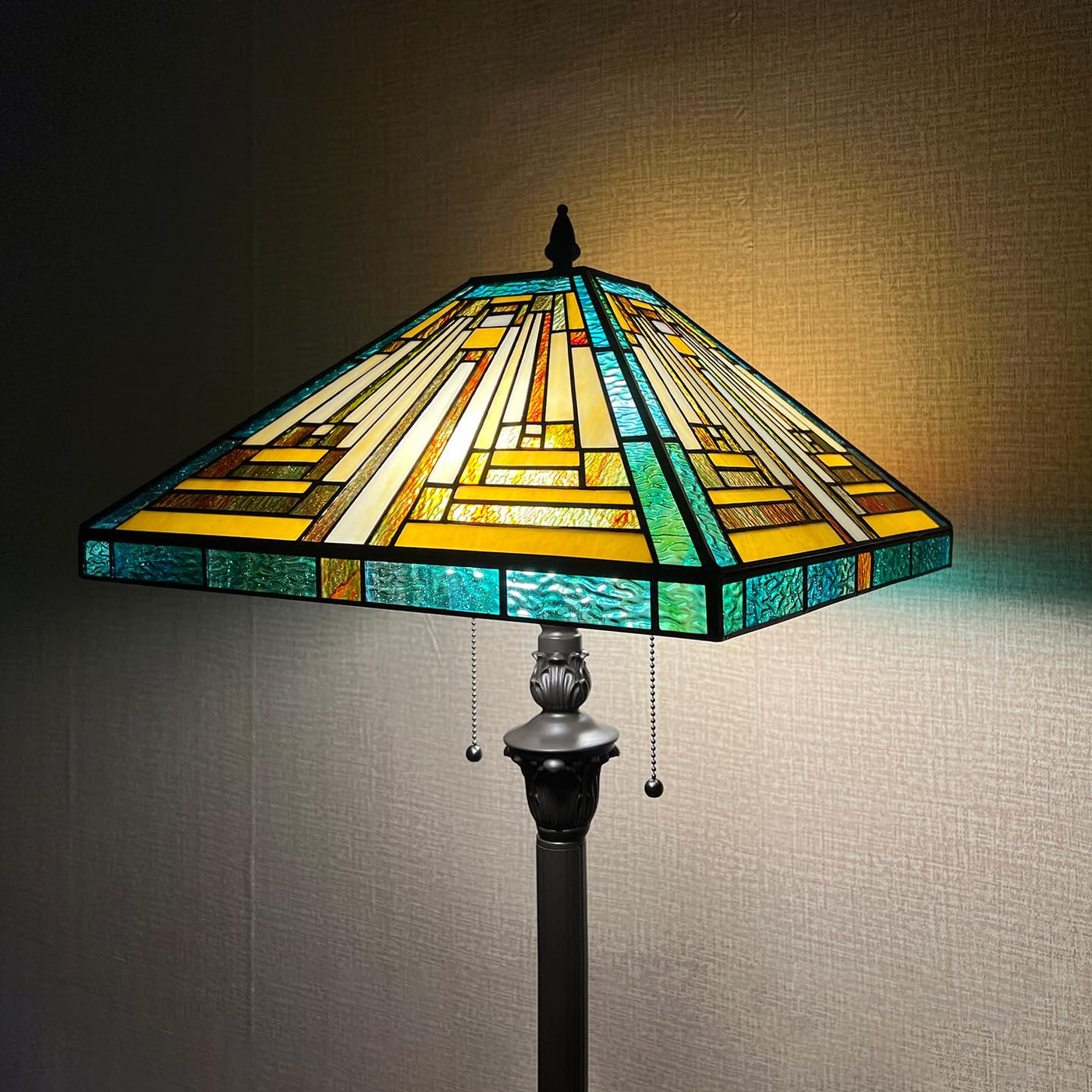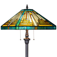 Capulina Tiffany Floor Lamp 2-Light 16X16X63 Inches Amber Green Mission Antique Style Stained Glass Standing Reading Light For L