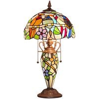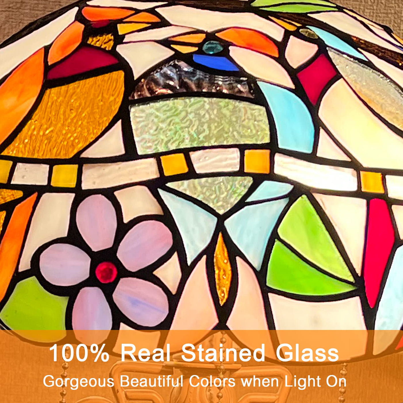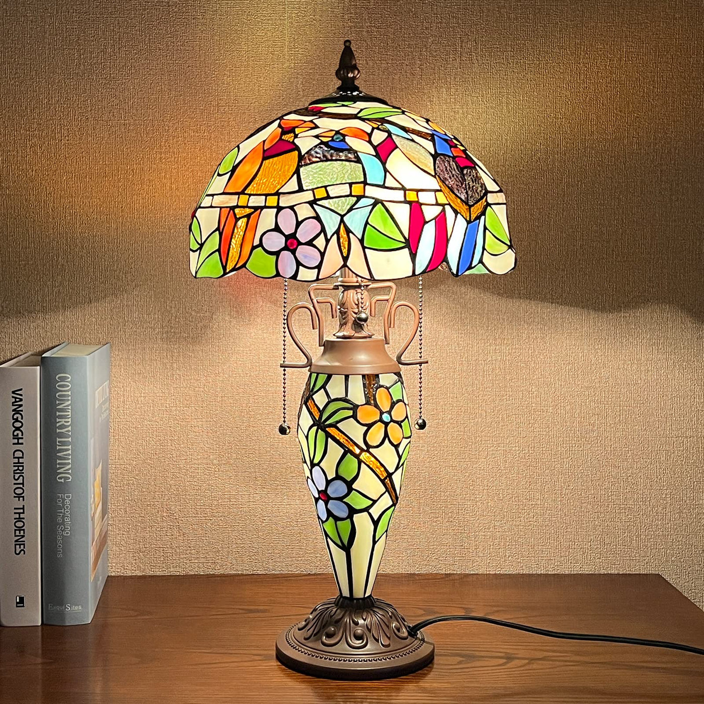 Capulina Tiffany Lamp Stained Glass Table Lamp 12X12X23 Inches 3-Light Cardinal Birds Mother-Daughter Vase Style Desk Reading Light Decor For Home Office Bedroom Living Room