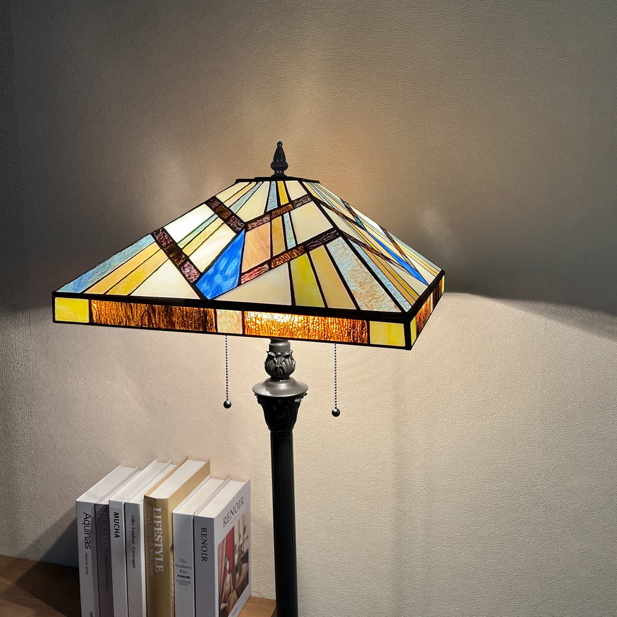 Capulina Tiffany Style Floor Lamp 2-Light 16X16X63 Inch Cream Amber Antique Mission Style Stained Glass Standing Light For Livin