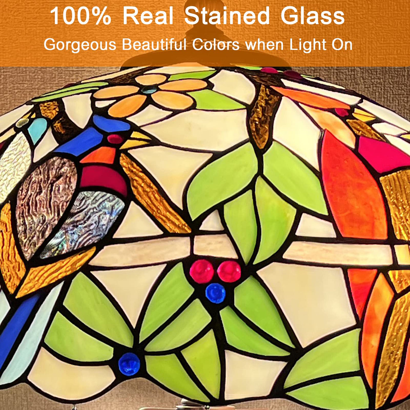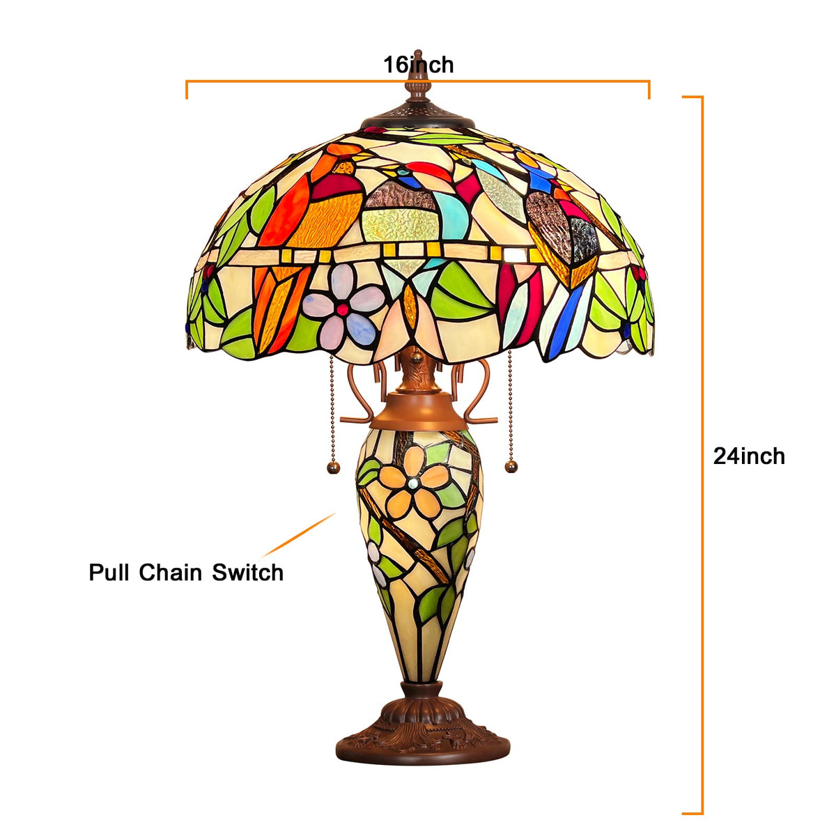 Capulina Tiffany Table Lamp 16X16X24 Inches Cardinal Birds Style Stained Glass Mother-Daughter Vase Style Desk Reading Light Decor For Home Office Bedroom Living Room