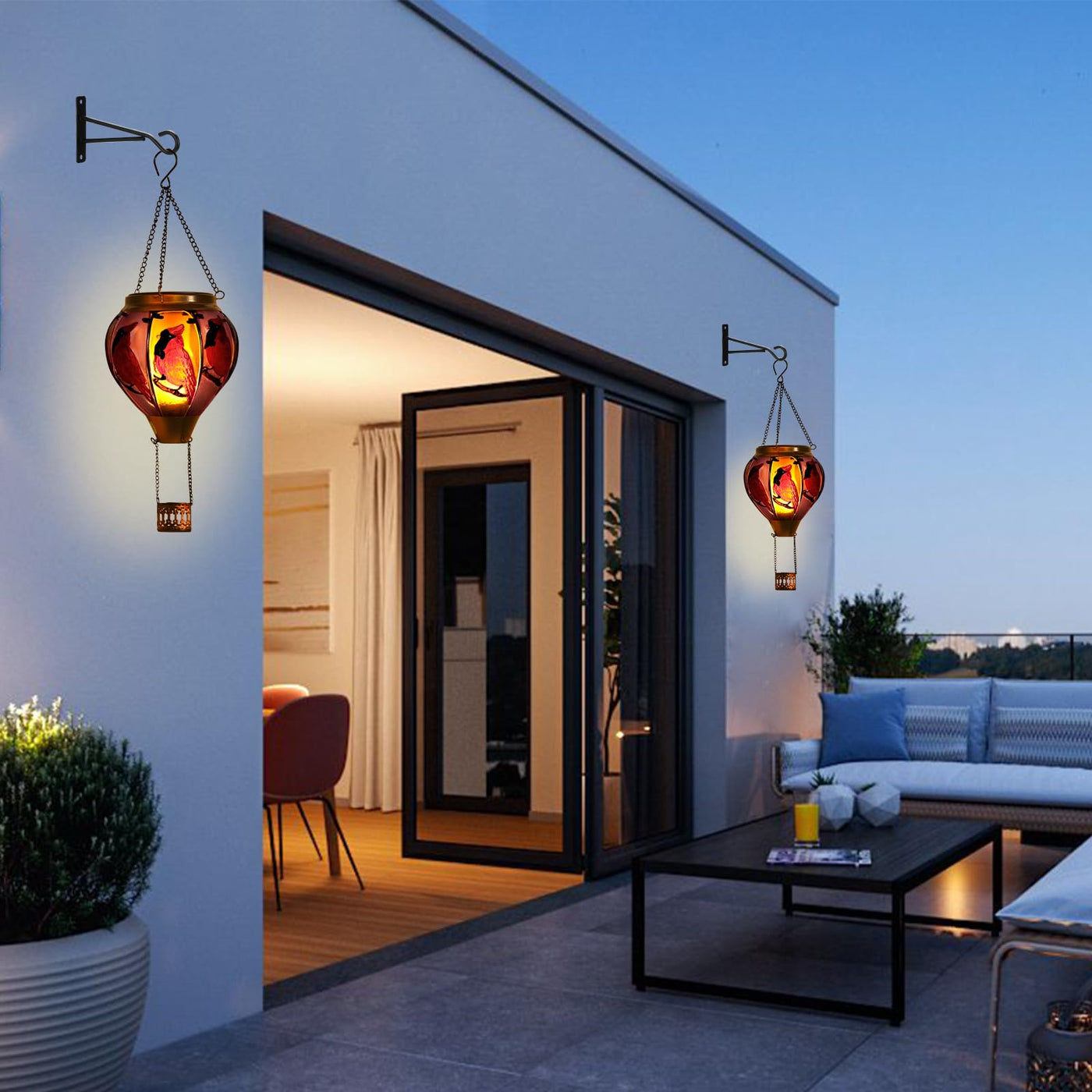 Q: What makes the Cardinal Bird Hot Air Balloon Solar Lantern unique?A: The Cardinal Bird Hot Air Balloon Solar Lantern features a distinctive design with two adjacent glass pieces in different colors, creating a striking visual effect. Its built-in LED lights mimic flickering candle flames at night, enhancing the ambiance of your outdoor space.