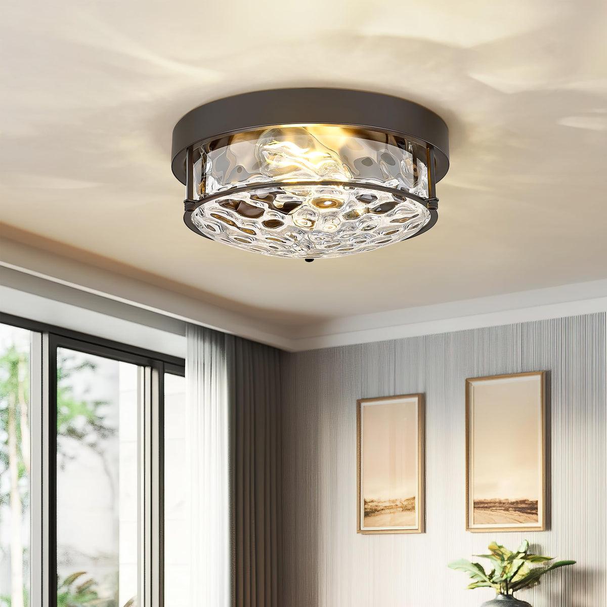 Cargifak 12-Inch Flush Mount Ceiling Light, Hammered Glass Shade, Oil Rubbed Bronze Finish, Model CKCL4822-2W-HGORB