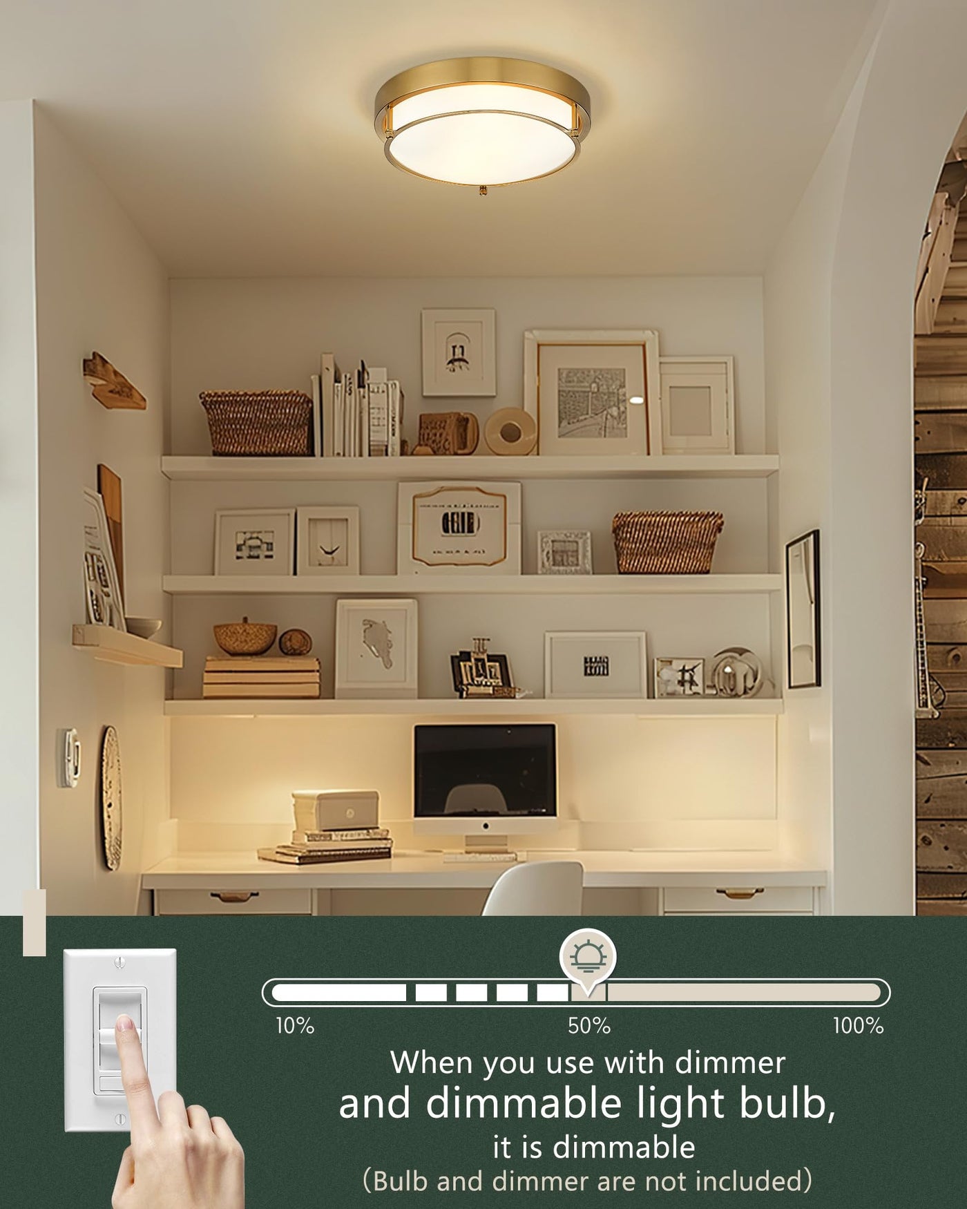 This ceiling light features a high-quality wear-resistant aluminum frame with a polished gold finish, ensuring durability and a sophisticated look. The design incorporates a white frosted glass dome lampshade, which is elegantly held in place by a slender metal frame. With two built-in E26 medium bulb bases, this fixture is compatible with bulbs of up to 60W, allowing for customizable lighting options. Its two-bulb design enhances light diffusion, creating a larger and more uniform lighting range for any room.