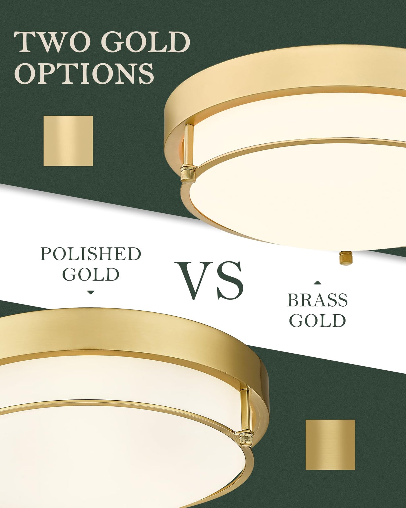Cargifak 12 Inch Flush Mount Light Fixture, 2-Light Polished Gold Ceiling Light for Hallway, Kitchen, Bedroom - Model CKCL4822-2W-PG