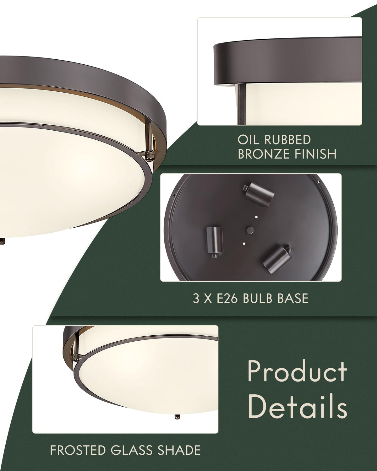 Cargifak 16 Inch Flush Mount Ceiling Light, 3-Light Close To Ceiling Light Fixtures With Oil Rubbed Bronze Finish For Bathroom B