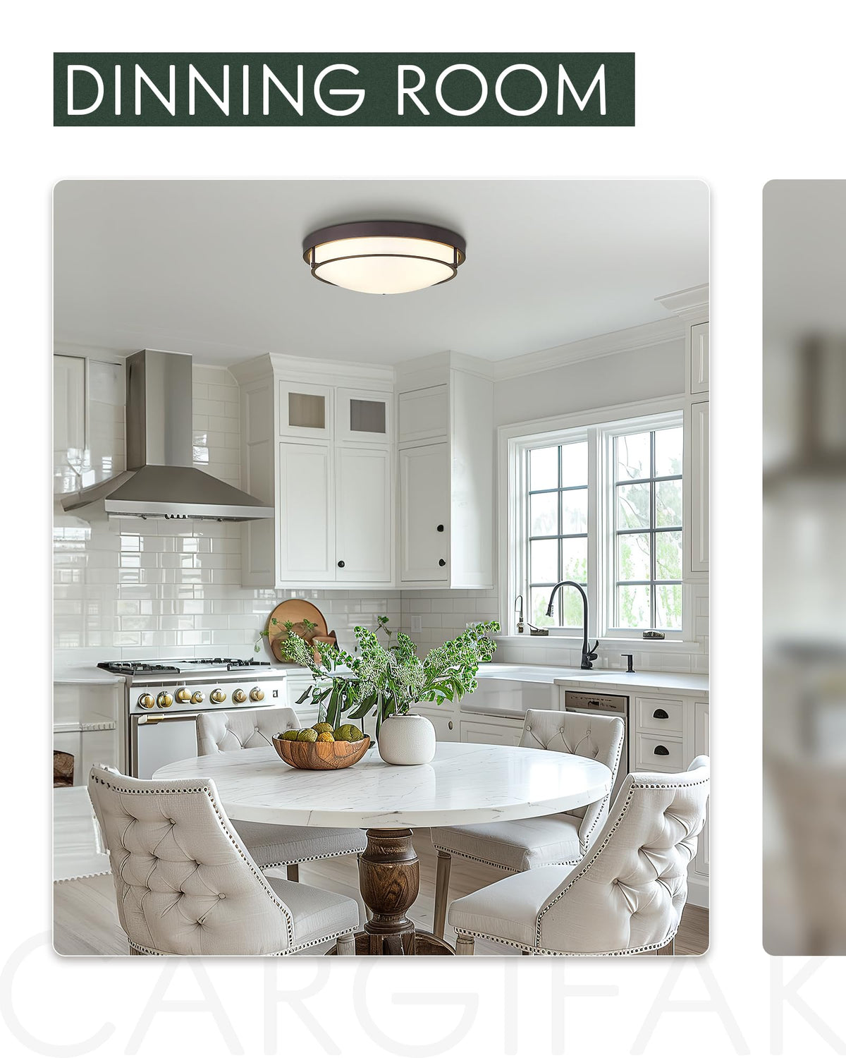 Q: Where can I install the Cargifak Flush Mount Ceiling Light?A: The modern design of the Cargifak Flush Mount Ceiling Light makes it suitable for a variety of spaces, including kitchens, bathrooms, bedrooms, living rooms, dining rooms, study rooms, porches, and entryways.