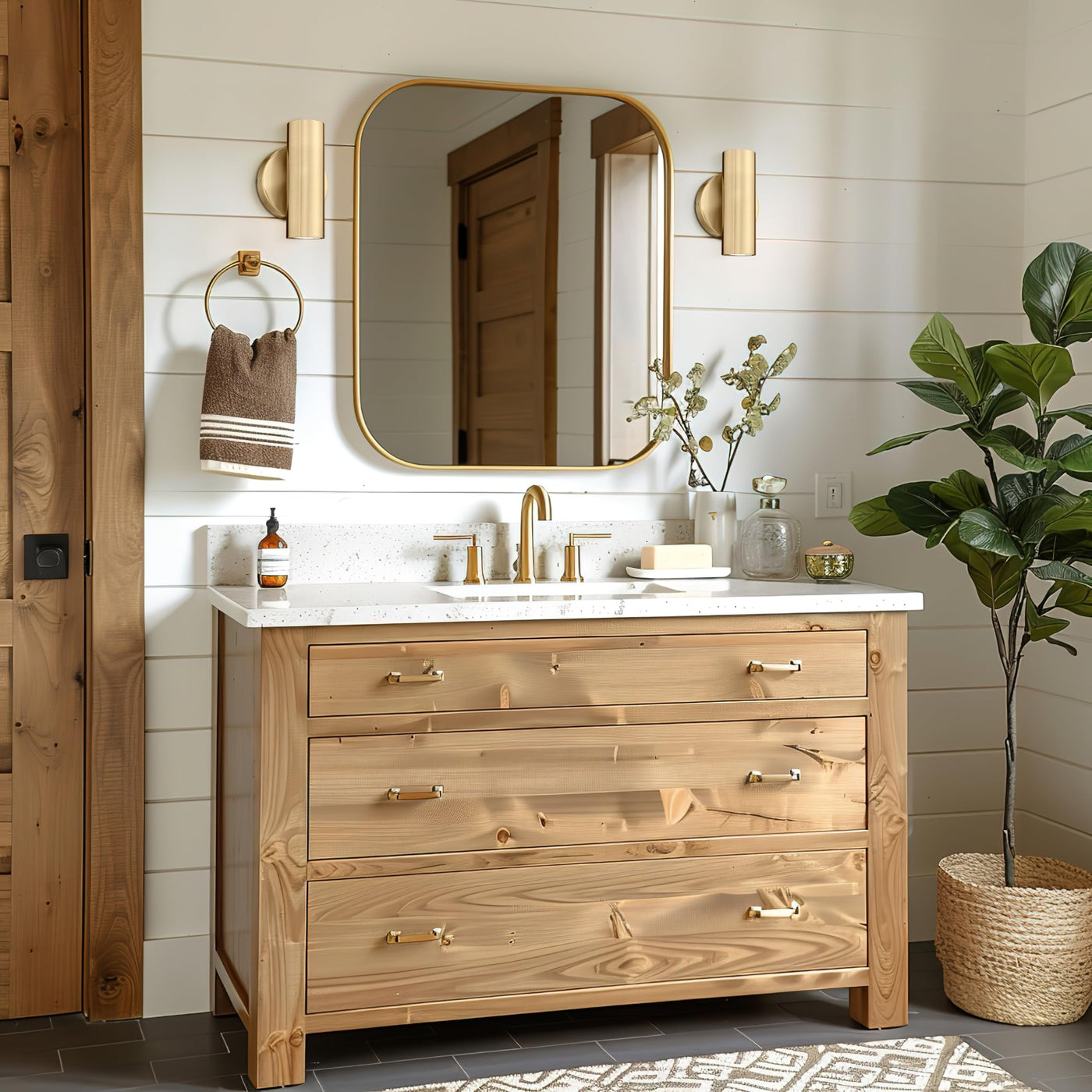 Q: What color options are available for this wall light?A: This wall light is available in a brass gold finish. It complements a variety of decor styles.