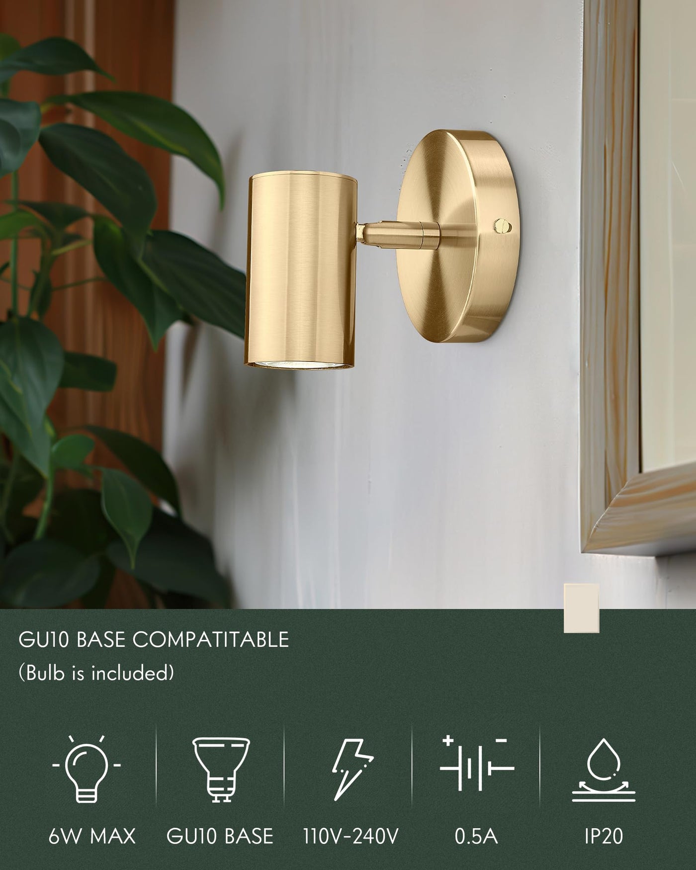 This wall-mounted light fixture is crafted from well-made metal and features a vintage brass finish, combining modern aesthetics with a classic appeal. Its sleek design includes a rounded backplate and a horizontal arm, ensuring a clean and sophisticated look. The cylindrical metal shade effectively disperses light from a 6W GU10 bulb, providing ample brightness to warm up your space. The pivoting design allows for 180° adjustment and 360° rotation, making it easy to direct light exactly where you need it.