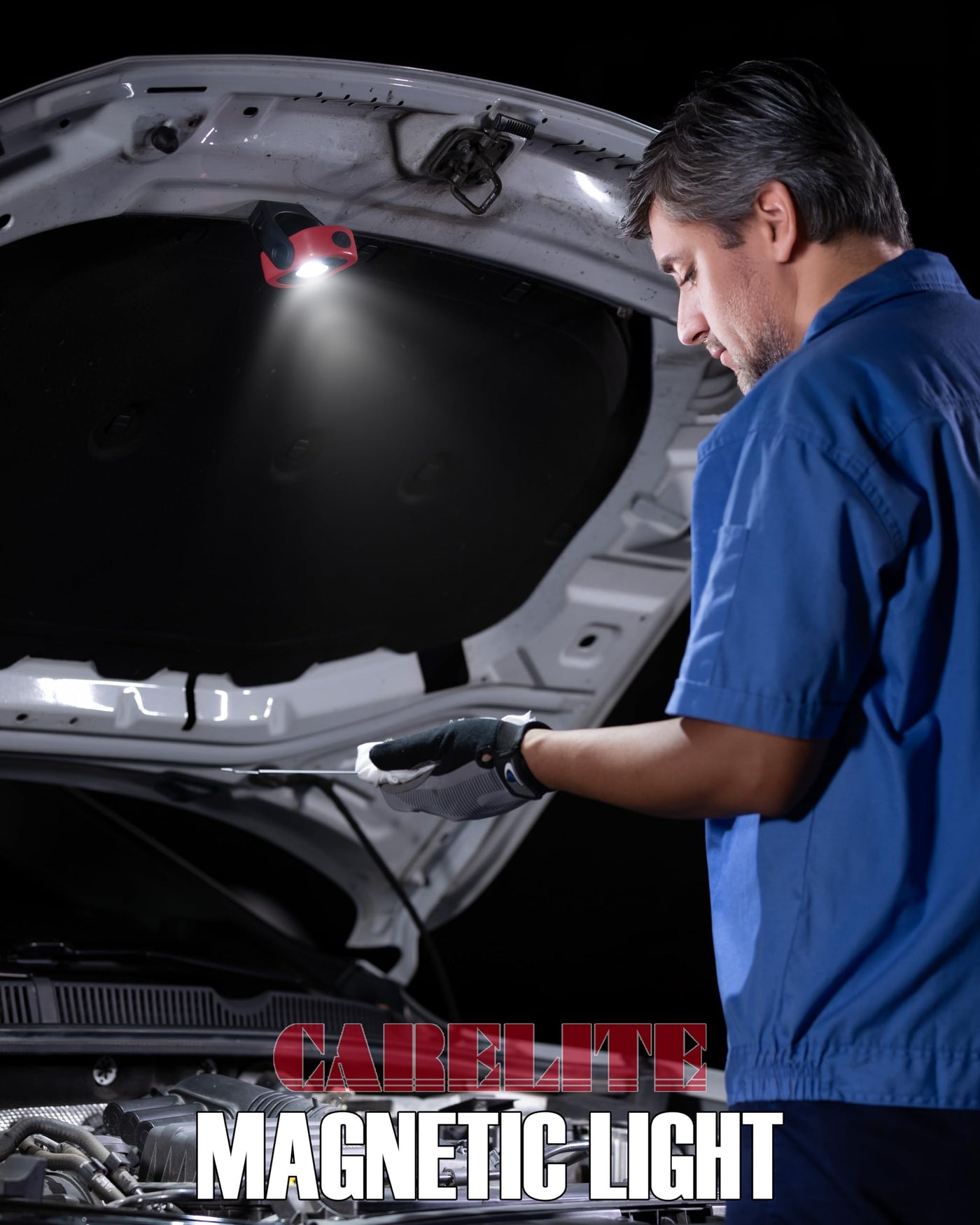 Q: How do I care for the Magnetic Work Light?A: To maintain the Magnetic Work Light, avoid submerging it in water, clean it with a damp cloth, and store it in a dry place when not in use.