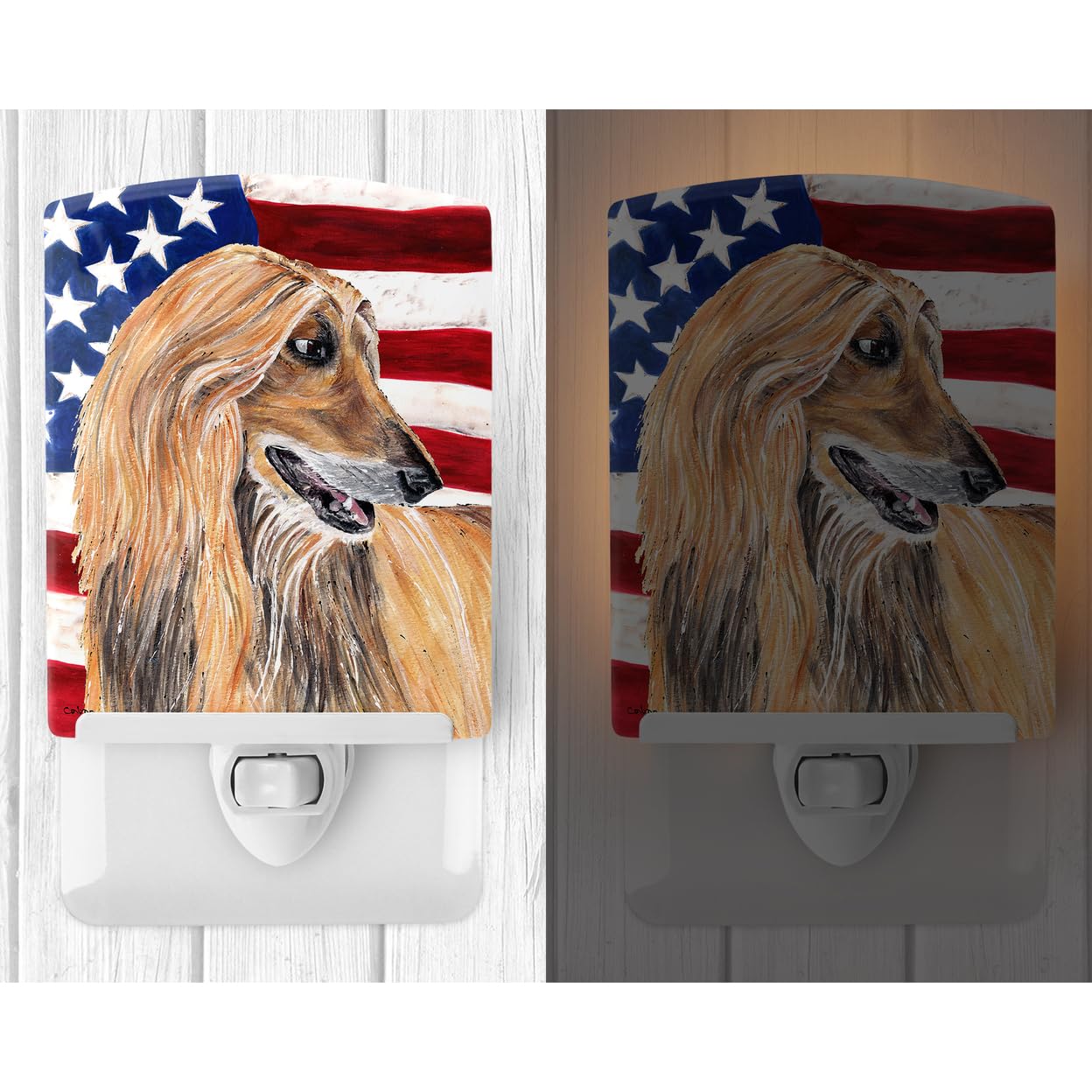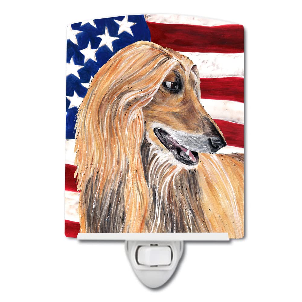 Caroline'S Treasures Afghan Hound Ceramic Night Light, Usa Flag, Ul-Certified, 6X4X3"
