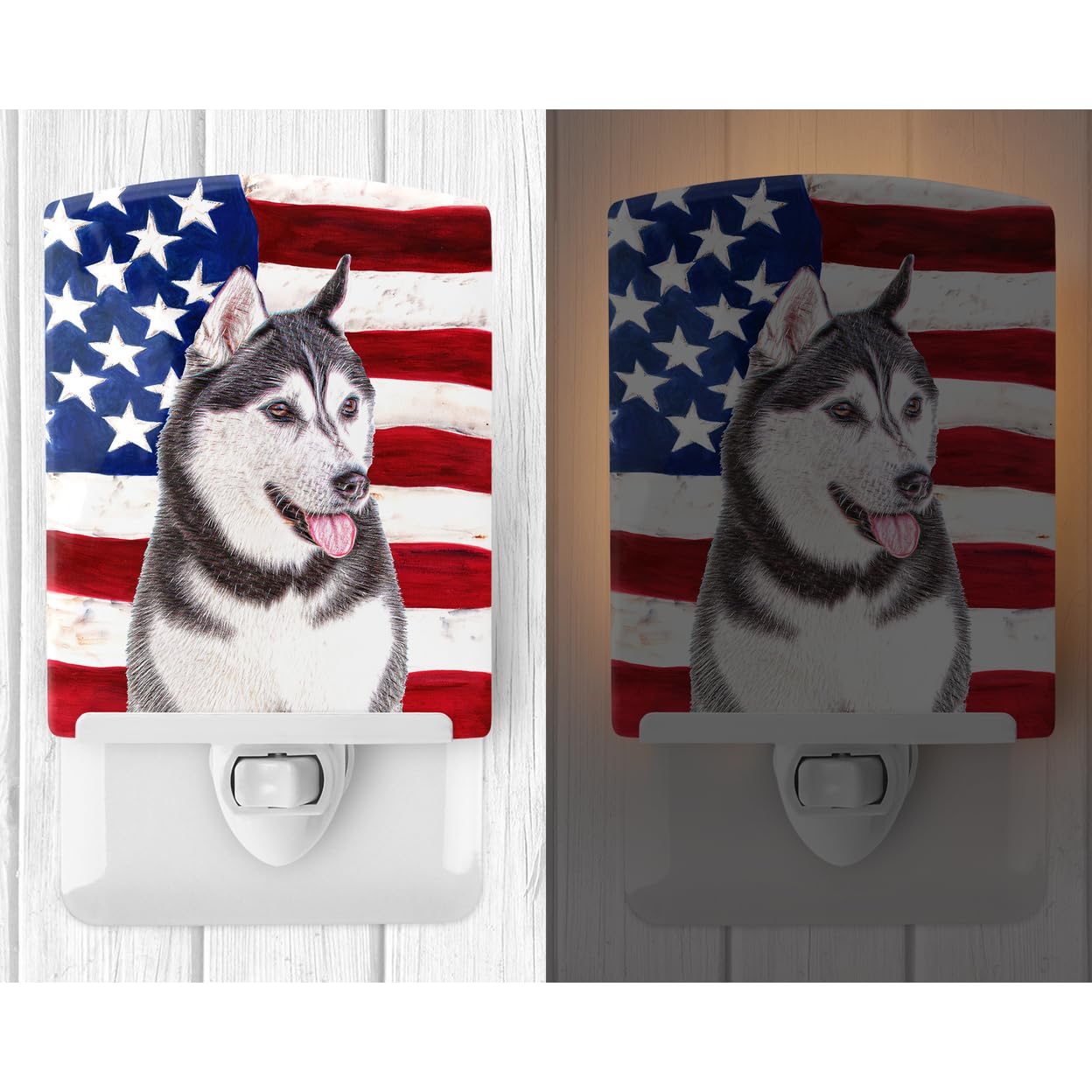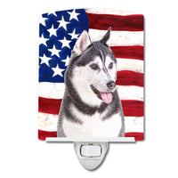 Caroline'S Treasures Alaskan Malamute Ceramic Night Light, Usa Flag, Ul-Certified, 6X4X3