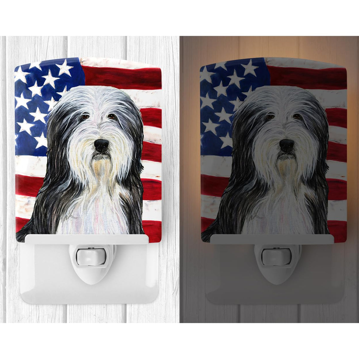 Caroline'S Treasures Bearded Collie Ceramic Night Light, Usa Flag, 6X4X3, Ul-Certified,