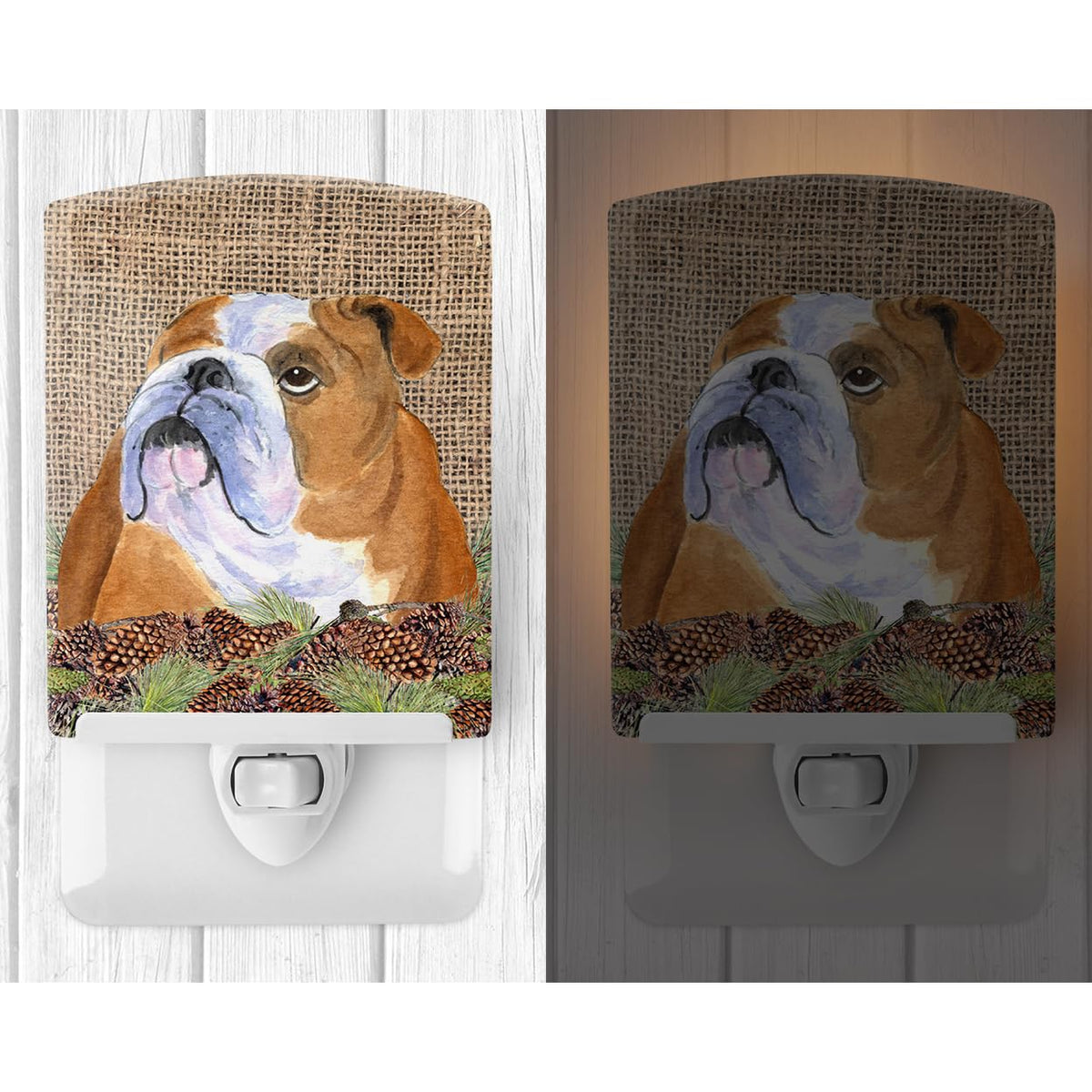 Caroline'S Treasures Bulldog English Ceramic Night Light, 6X4X3, Faux Burlap Design, Ul-Certified
