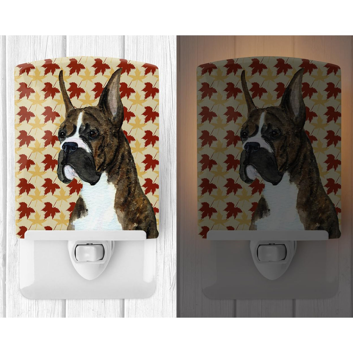 Caroline'S Treasures Ceramic Night Light - Boxer Brindle, Fall Leaves, 6X4X3, Ul-Certified,