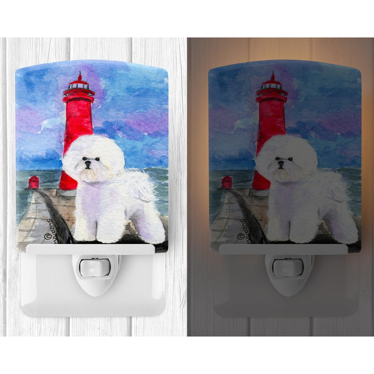 Caroline'S Treasures Ceramic Night Light - Lighthouse With Bichon Frise, Ul-Certified, 6X4X3