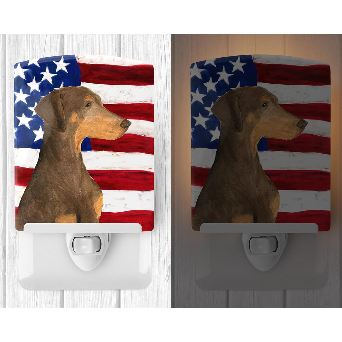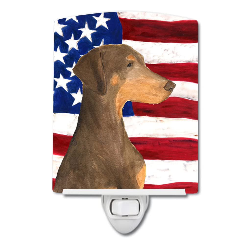 Caroline'S Treasures Doberman Ceramic Night Light - Usa Flag, Ul-Certified, 6X4X3, Multicolor