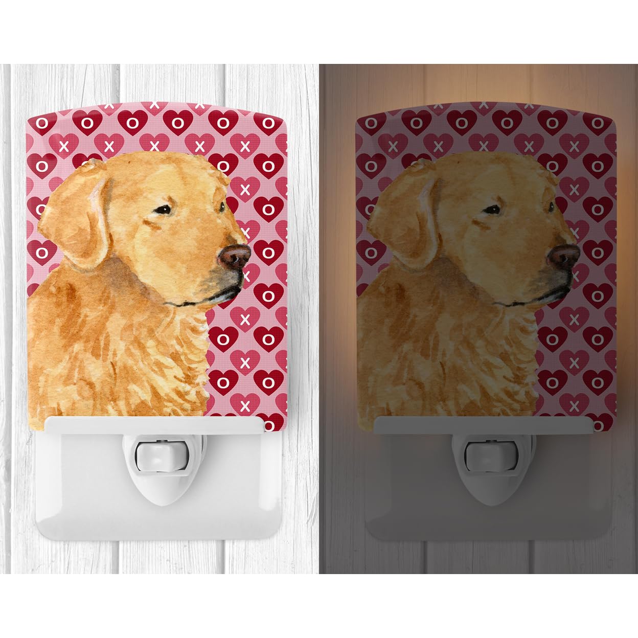 Caroline'S Treasures Golden Retriever Hearts Valentine'S Day Ceramic Night Light, 6X4X3, Multicolor