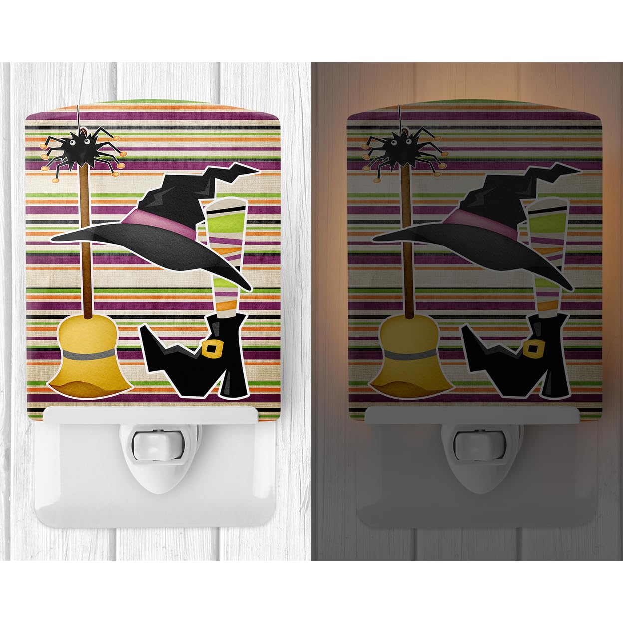 The color design features a whimsical witch costume and broom on stripes, adding a festive touch to your Halloween decor. Its compact size of 6x4x3 inches ensures it fits seamlessly into any space while delivering the warm glow you need.