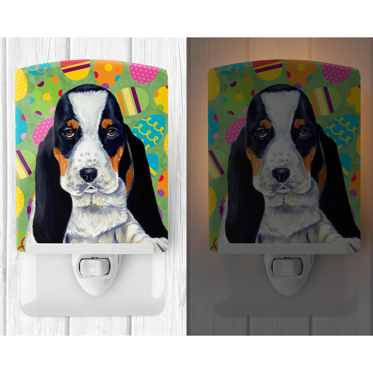 Q: What are the dimensions of the Caroline's Treasures Basset Hound night light?A: The dimensions of the night light are 6 inches high, 4 inches wide, and it extends 3 inches deep.
